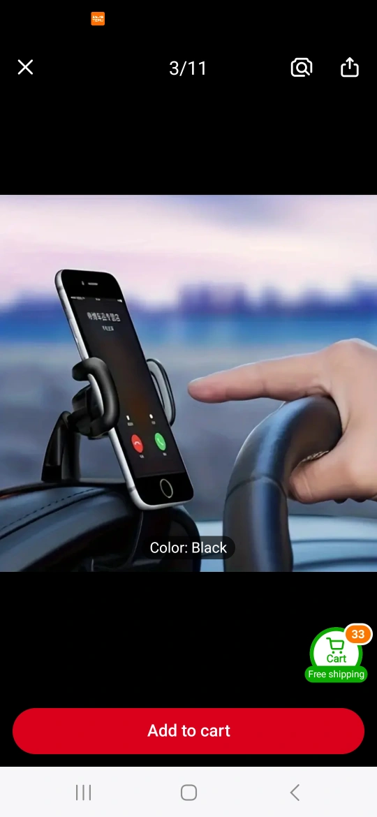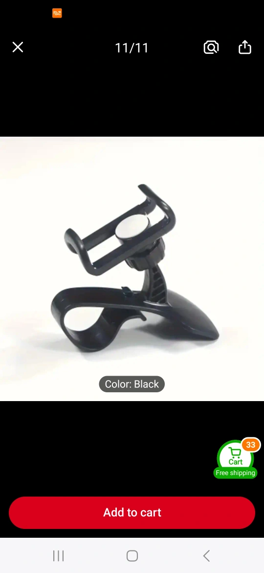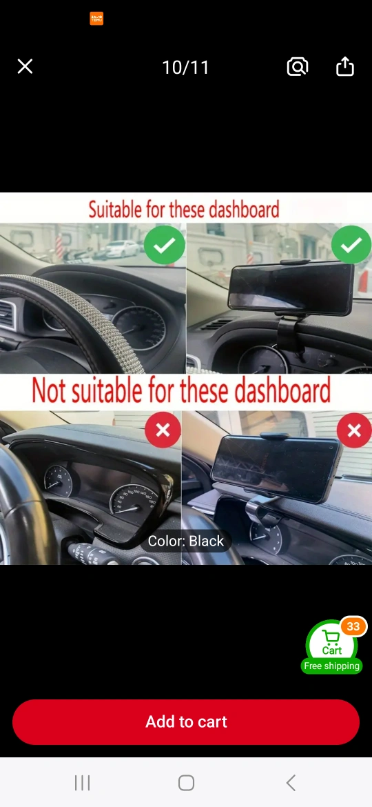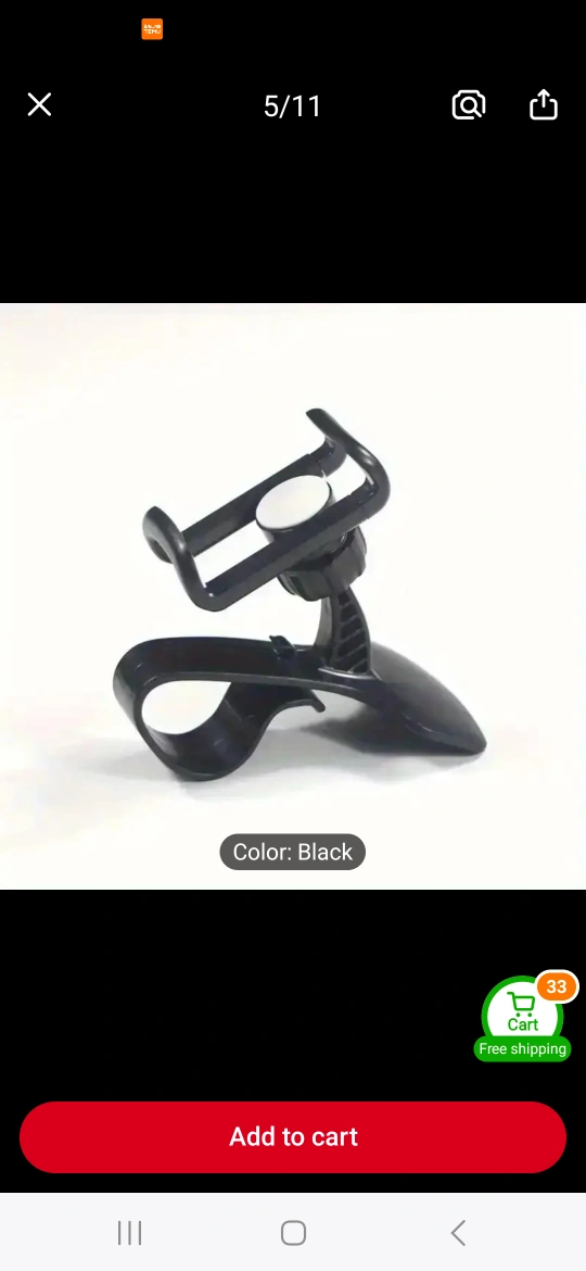 43Adjustable phone holder. Clips onto dashboard. Suitable for various inside flat dashboards. Easy to use. Black colour.
