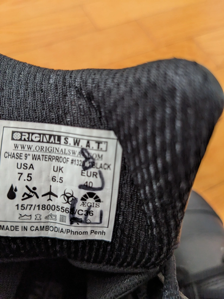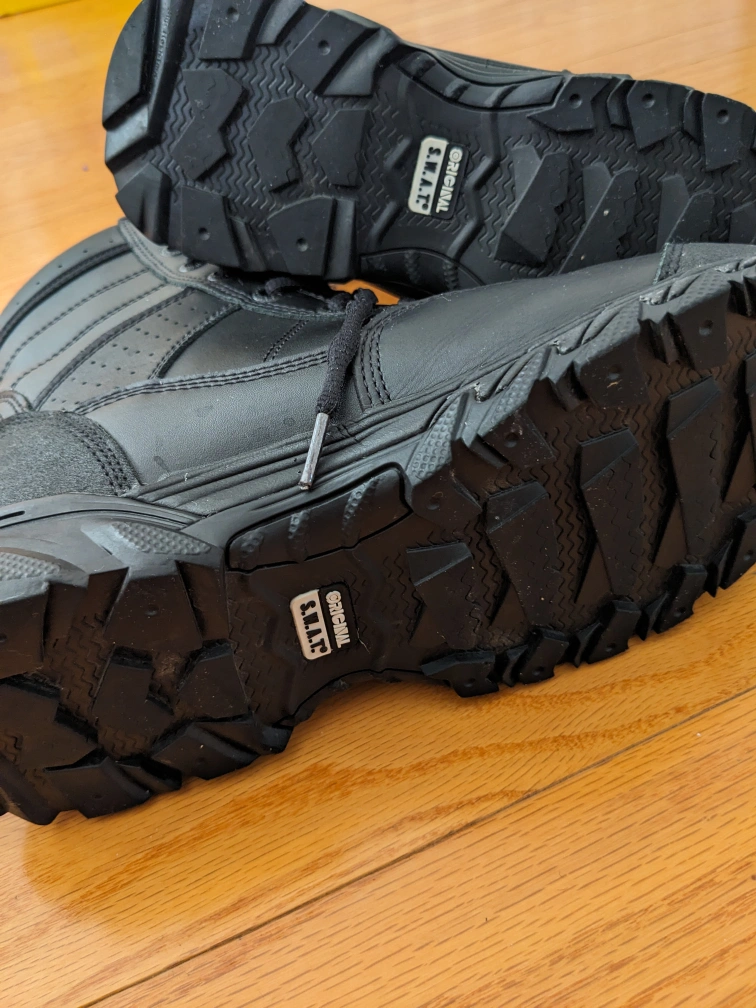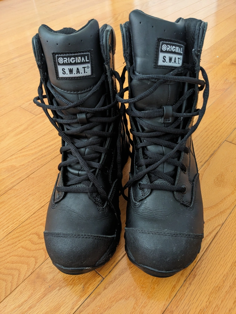 1000+Original S.W.A.T. men's waterproof boots. Size 7.5 US, 6.5 UK, 40 EUR. Black leather. Lace-up. Durable sole. Excellent for outdoor use.