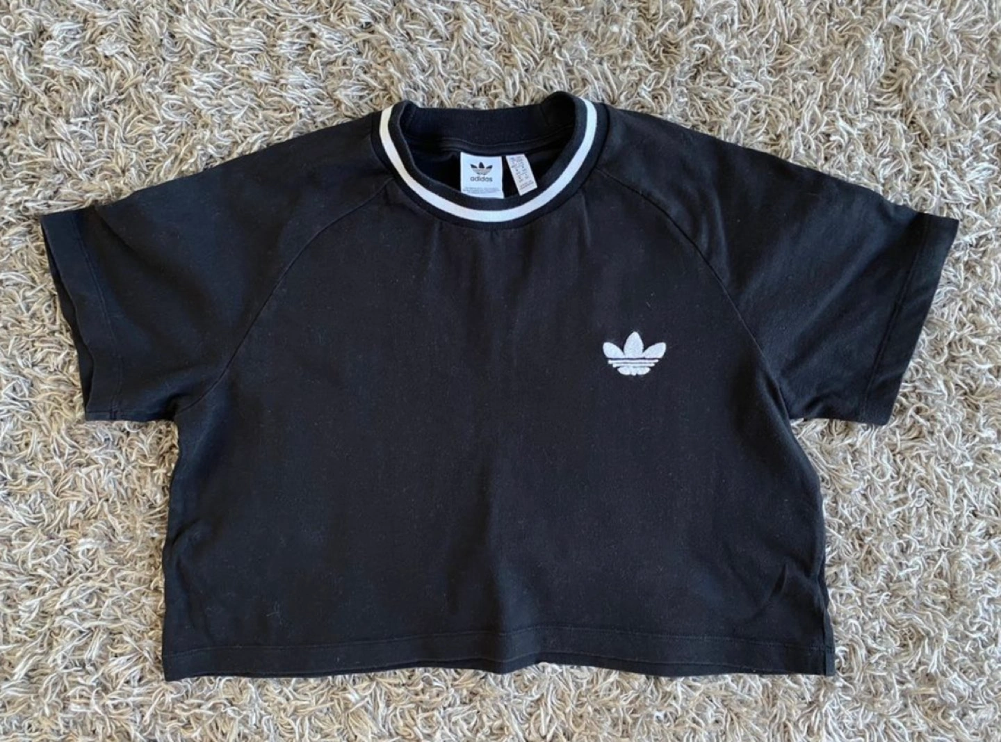 Worn a couple times, in great condition ADIDAS black crop top tee! Regular fit, ribbed crewneck.