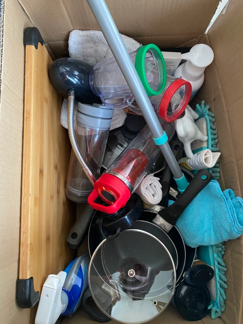 Moving out for the first time? Moving into a new apartment? Lost all of your belongings? I’ve got a bunch of stuff in this box to help you get started.