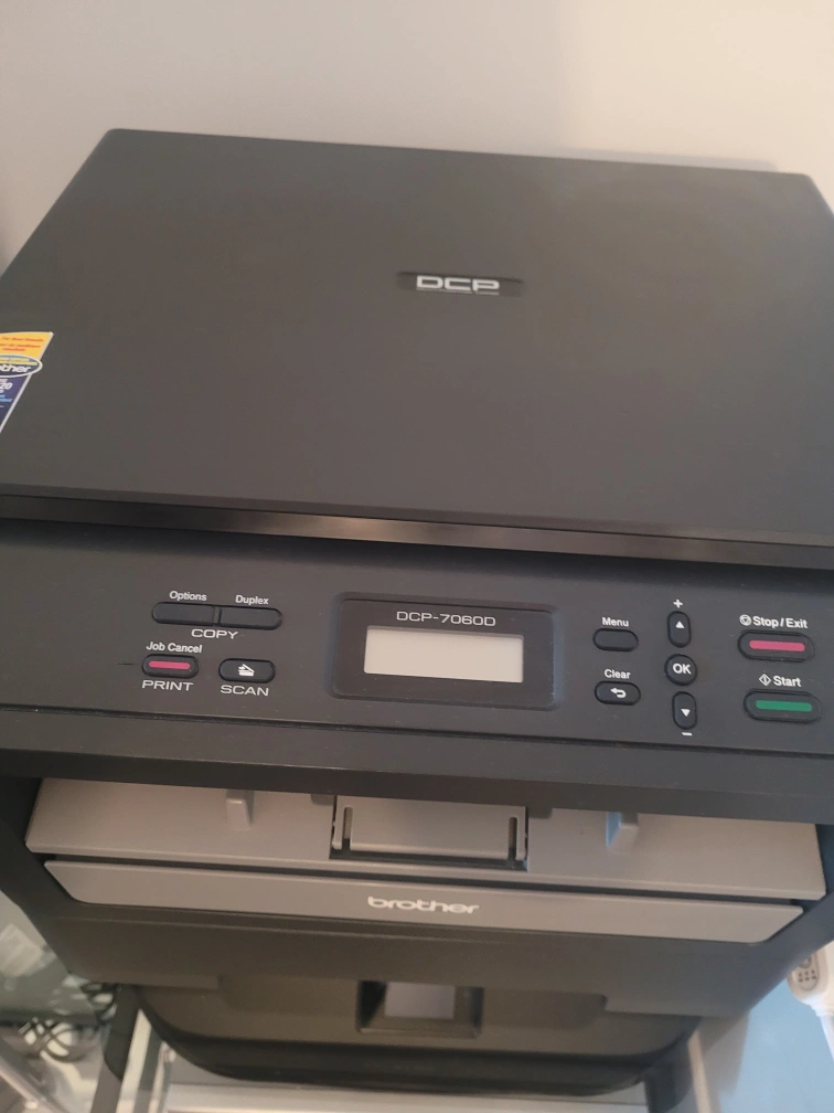 Multi-function printer, scans, prints, and copies. Good working order. Model number DCP-7060D.