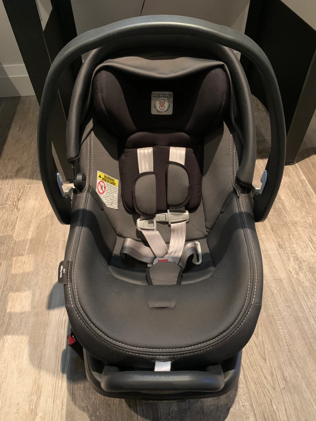 Made in Italy - Infant car seat, grey fabric, fantastic condition. Barely used! Includes all straps, buckles and base. Easy to install. Regular store price is $400. Expires 10.30.2026. Also willing to meet in Brampton, Caledon, Bolton or Orangeville.