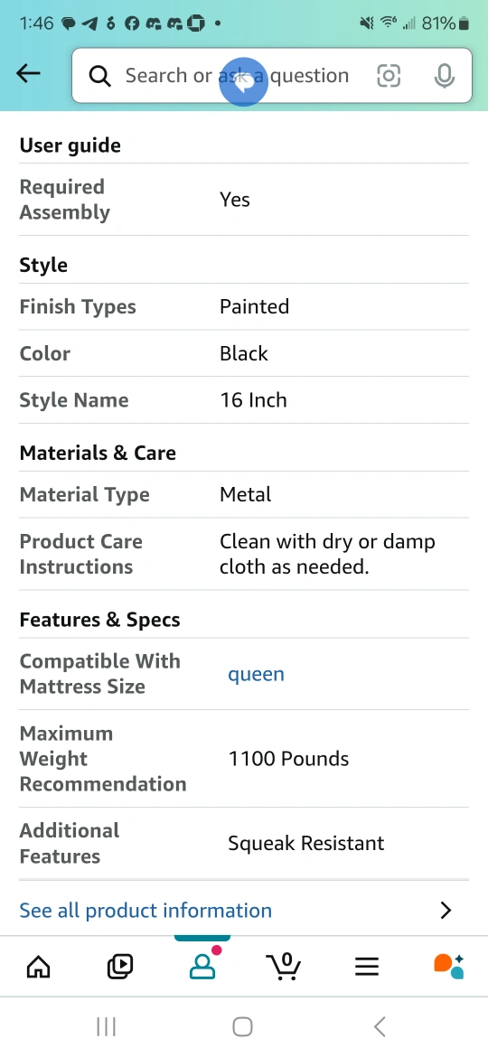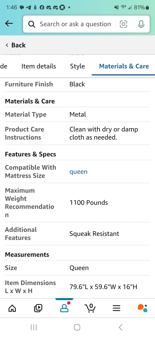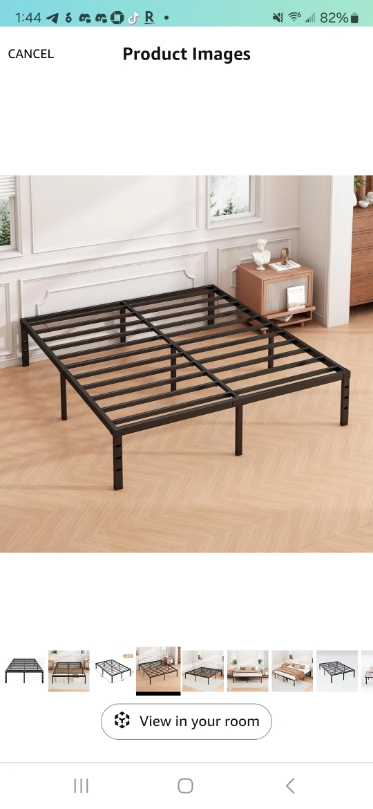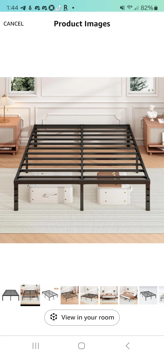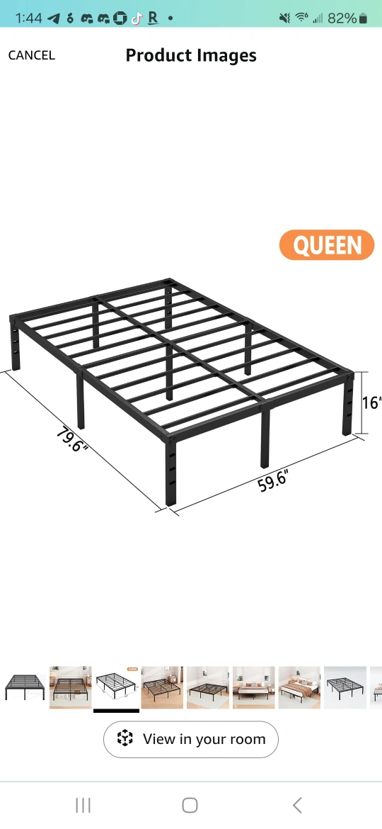 Sturdy metal bed frame. Queen size. Easy assembly. Sleek design. Supports most mattresses.Item Dimensions LxWxH
