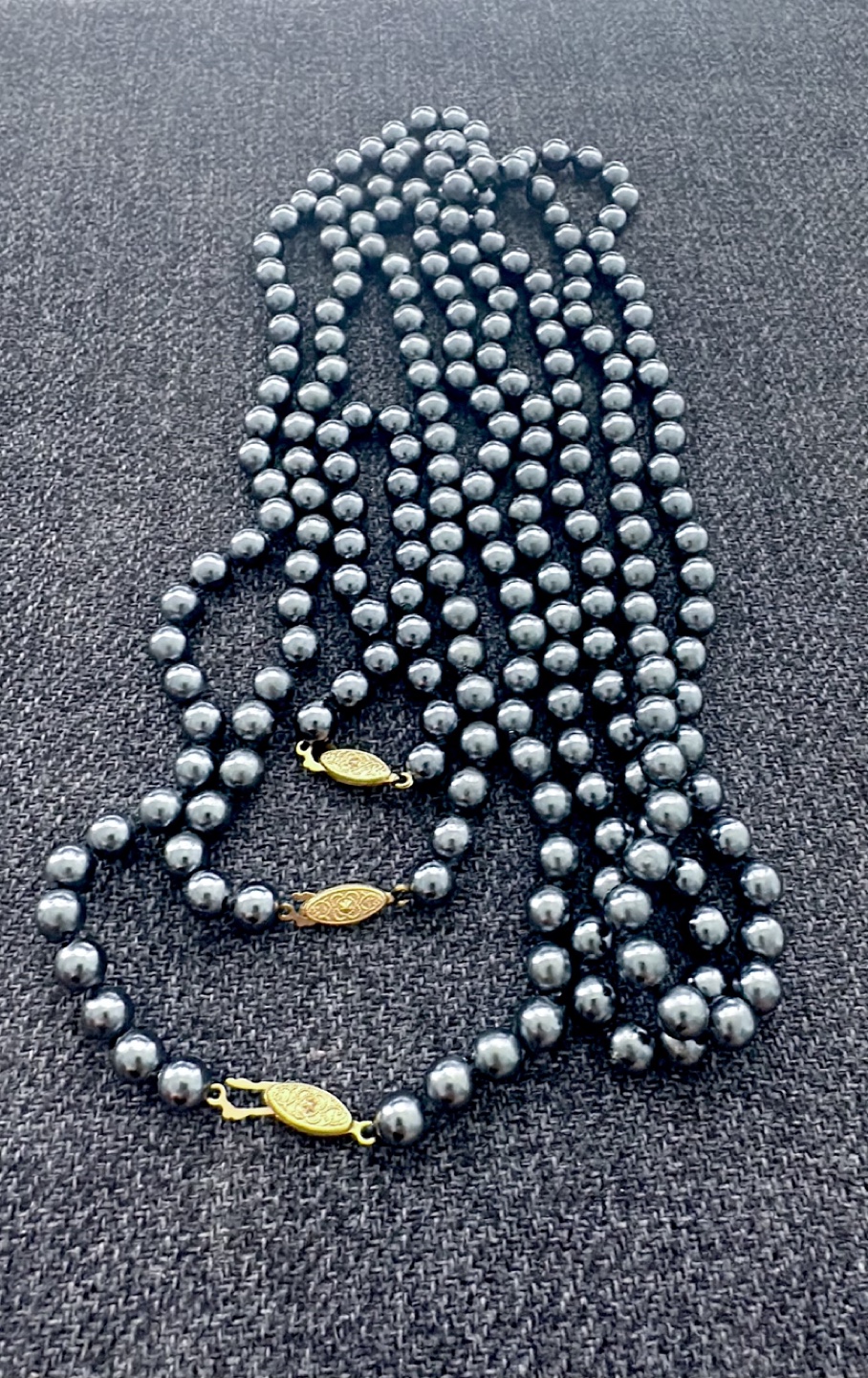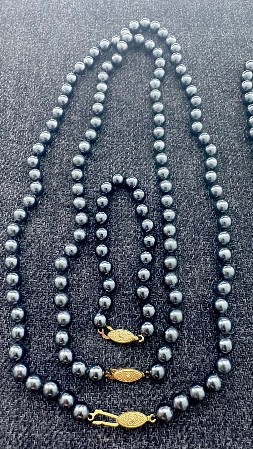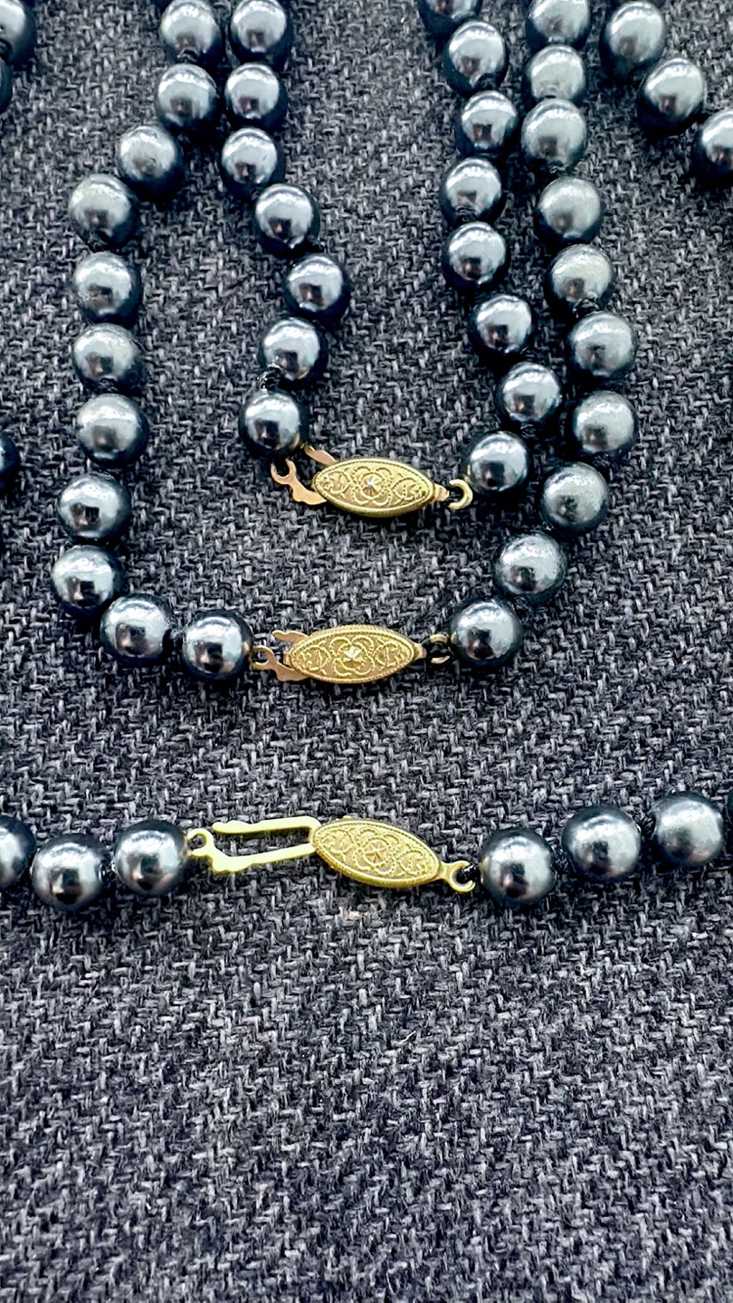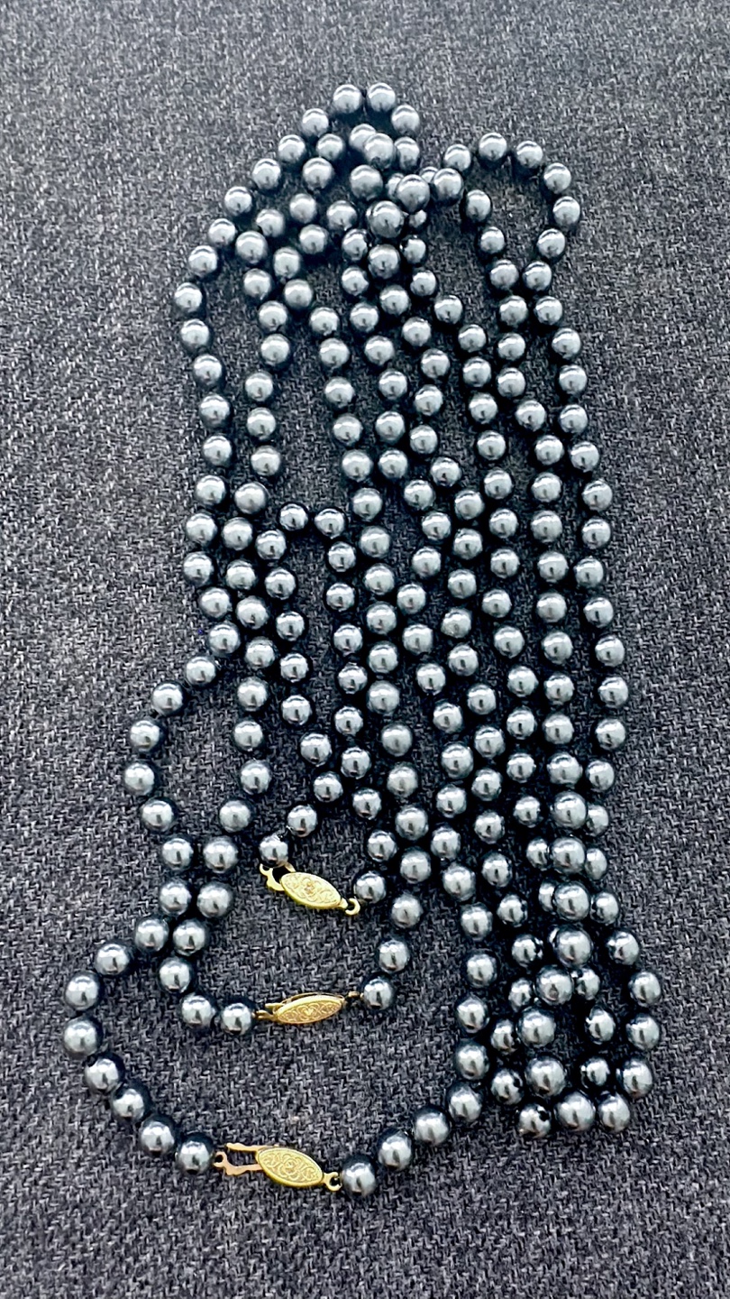 Lot of 4 Dark Grey Pearl Necklace with Gold Clasp