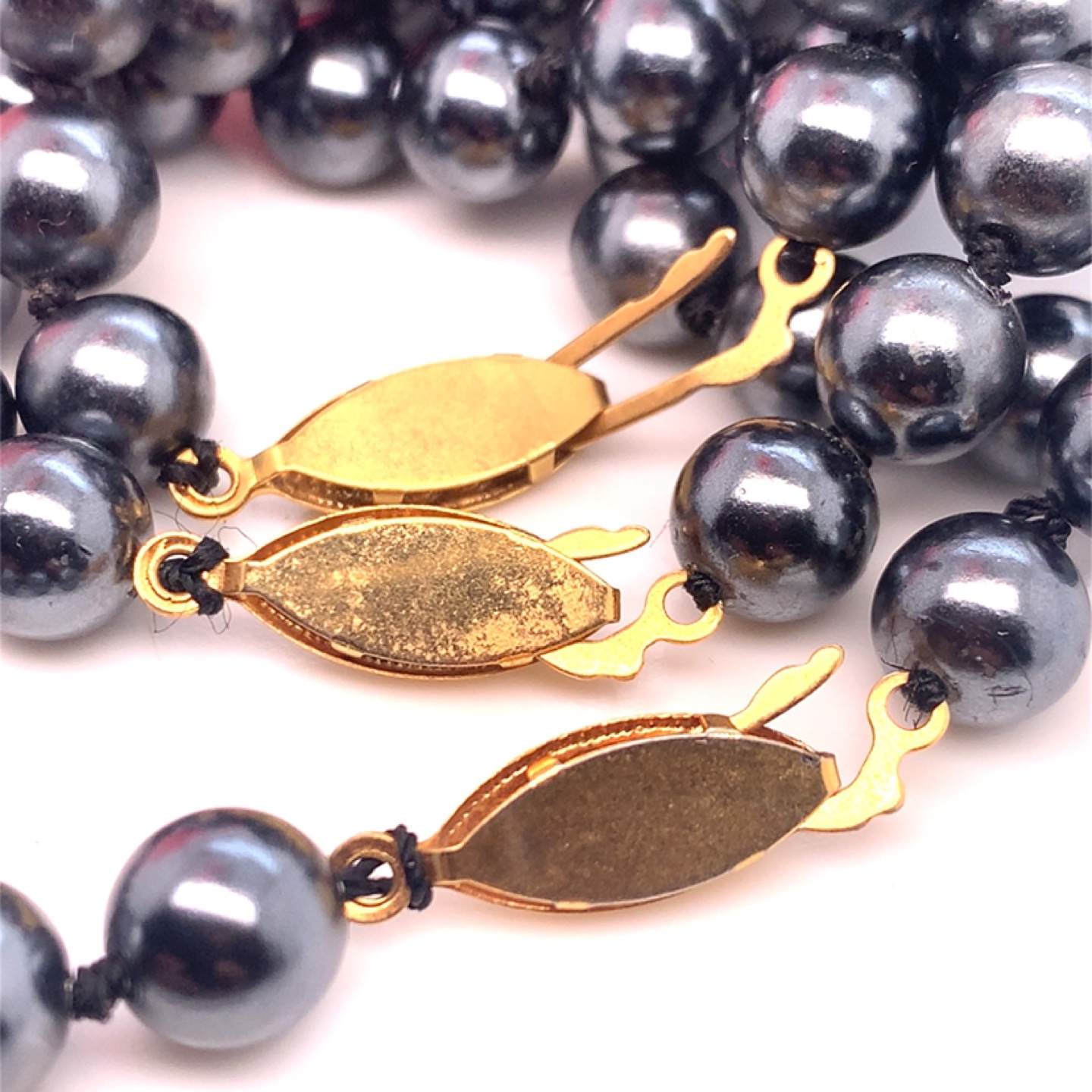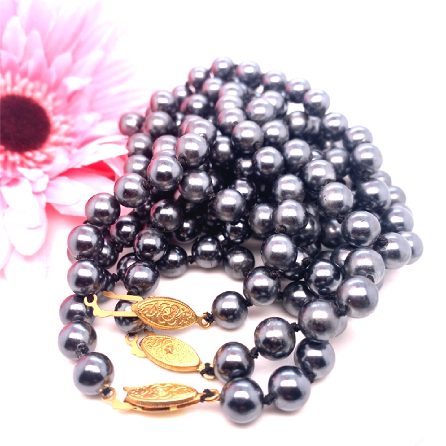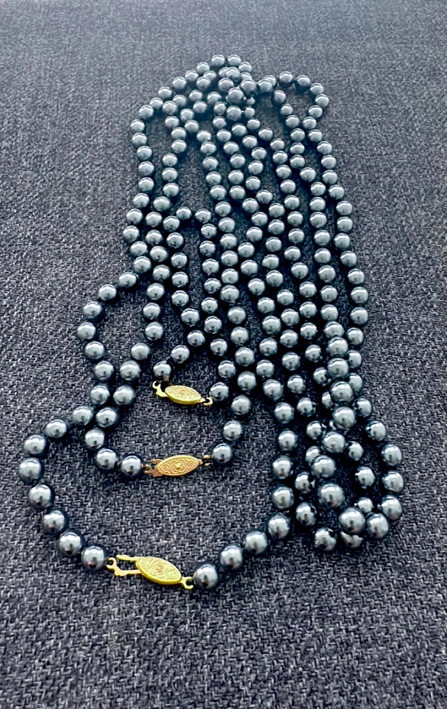 Lot of 4 Dark Grey Pearl Necklace with Gold Clasp