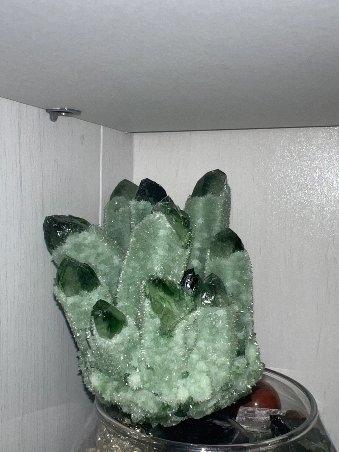 Stunning green quartz cluster. Multiple points. Unique crystal formation. Perfect for collectors or metaphysical enthusiasts.