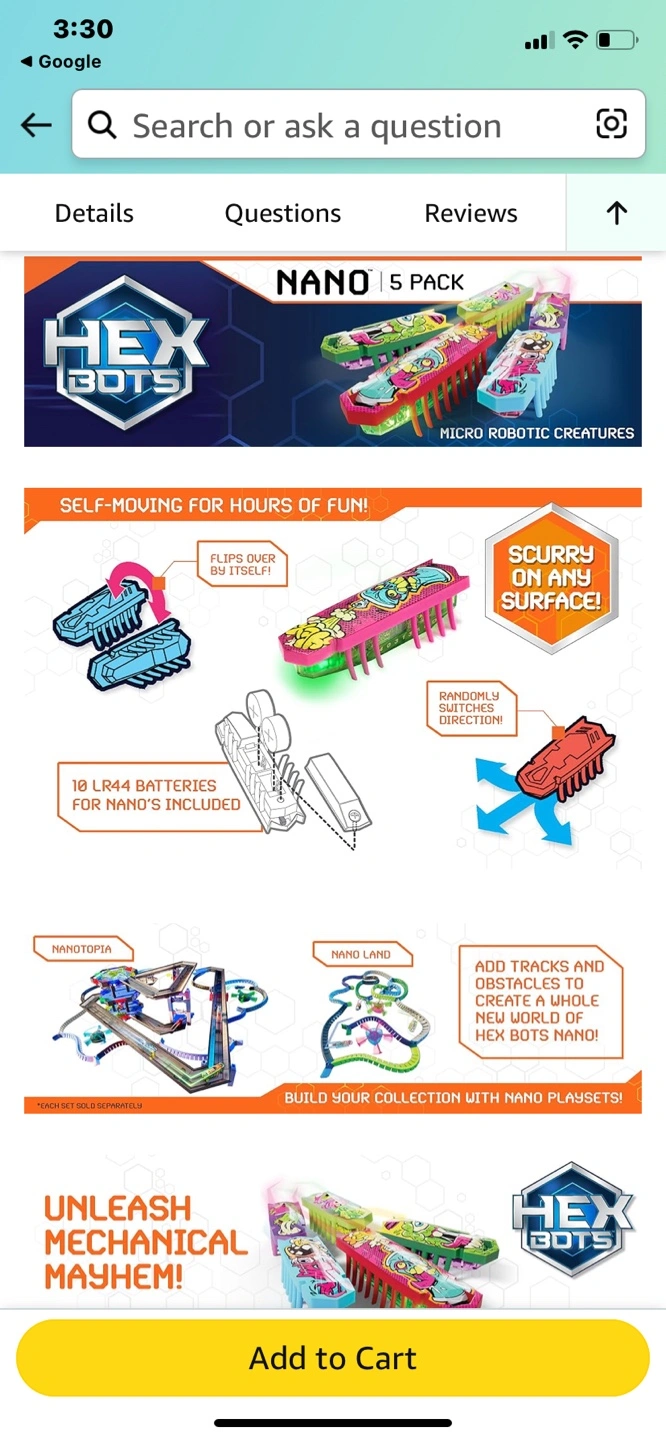 7–Self-moving micro robotic creatures. Hours of fun! Includes 18 LR44 batteries. Endless hours of fun and cats. Love them too.