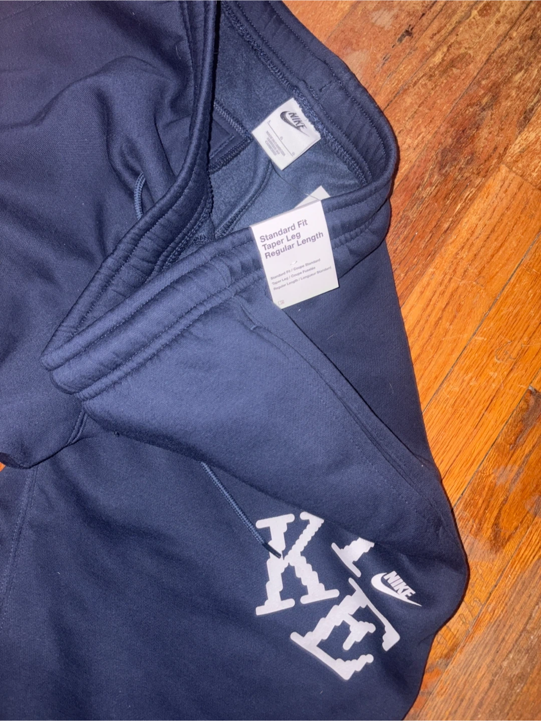 These are Nike men's sweatpants in a standard fit with a tapered leg and regular length. They're a navy blue color with a large 'NIKE' graphic on the side. BRAND NEW (pick up only)