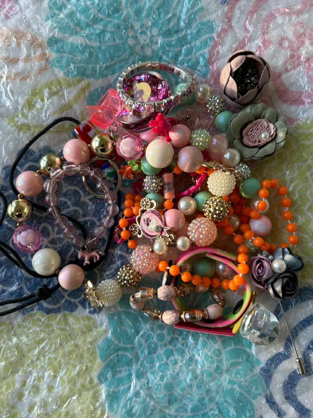 Large lot of colourful beaded necklaces, bracelets, and rings. Various styles and colours included. Perfect for Playing, wearing, collecting or crafting. Would have KEPT the Unicorn 🦄 bracelet if it fit! lol