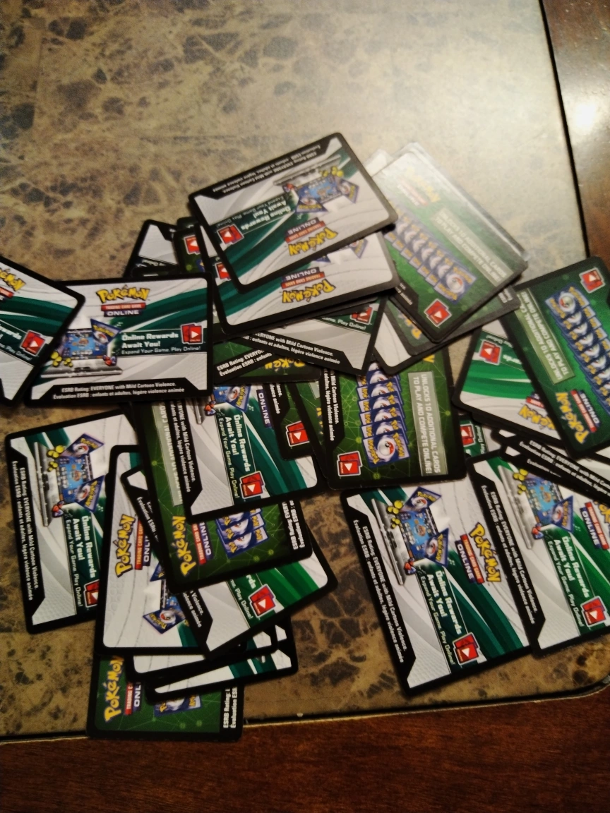 31.25 cents each. Pile of Pokemon Online trading cards. Unlocks additional cards to play and compete online. Around 45 none have been used.