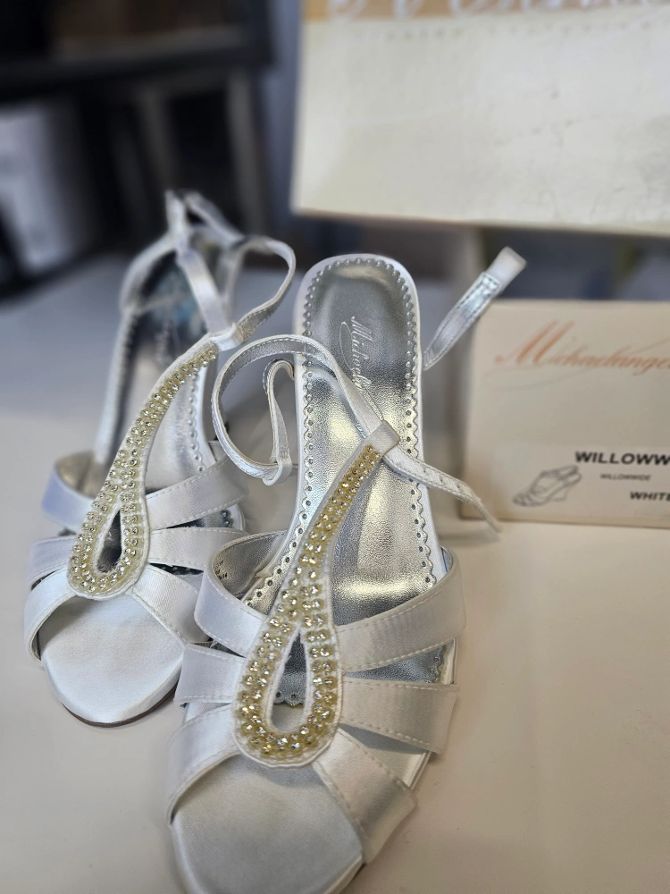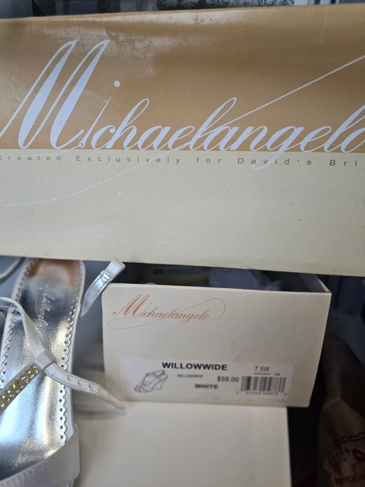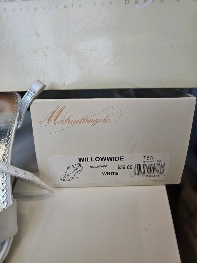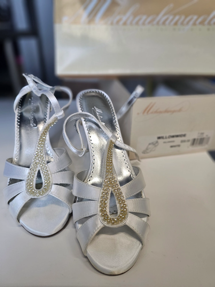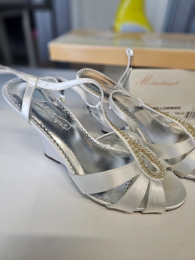 Michelangelo Willowwide White Satin Wedge Sandals - Size 7.5W