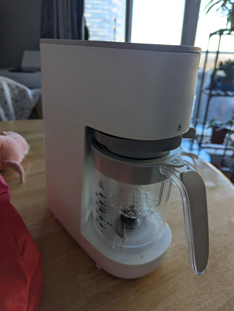 Baby food maker. White and grey. Good condition. Includes steaming and blending functions. Easy to clean.