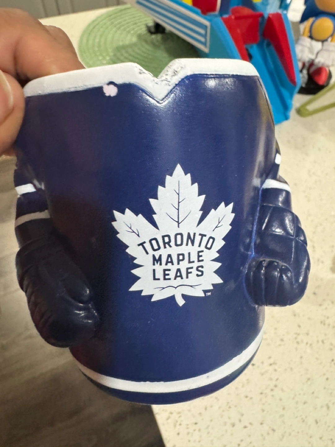 79Cooler can shaped like a goalie holder Features Toronto Maple Leafs logo.
