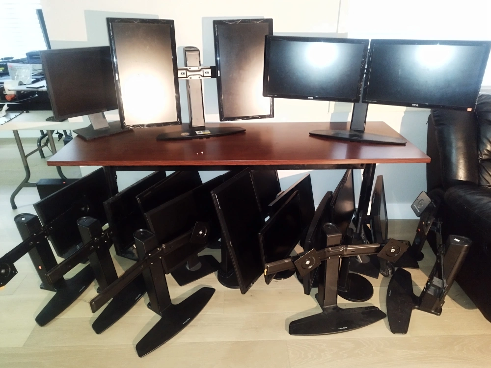 Multiple monitors, various sizes 20-24'' $10 up. Several mounts included. Single and dual monitor mounts starting from $10. Power Cables, graphics cables $5/ea