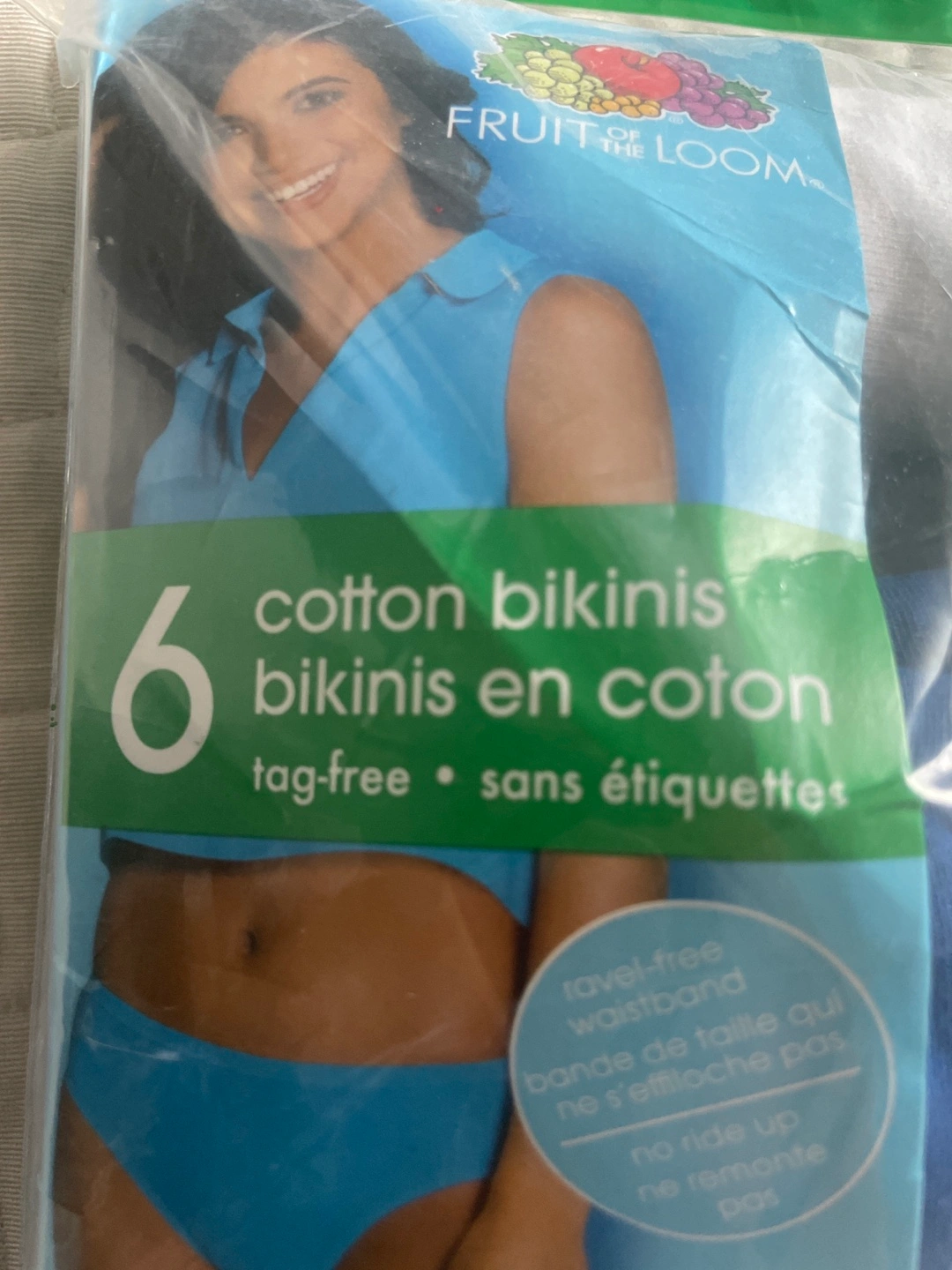513Only 5-pack of Fruit of the Loom women's cotton bikini underwear. Size large. Tag-free. Assorted colours. New only 5