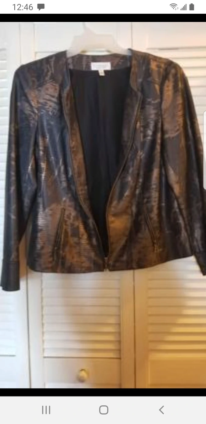 Never worn but washed once. Bought a few years ago. No longer fits. Gold/black snake skin design. Very fashionable!