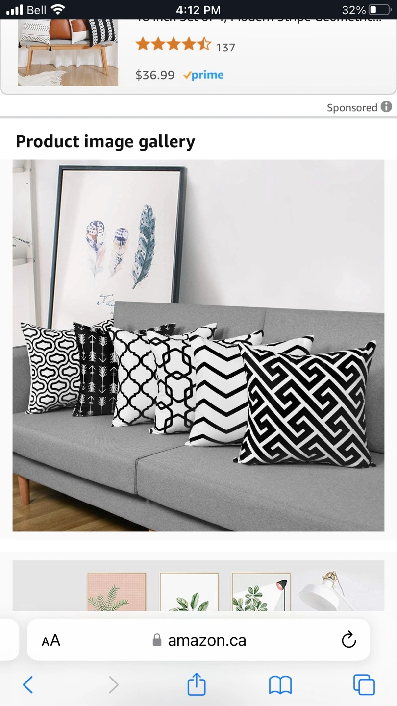 Set of 6 pillow covers. Black and white geometric patterns. 18 x 18 square. Zipper closure. Purchased for an event. Used once. Sold as a set. Inserts sold separately. Yonge/Davisville pick up.