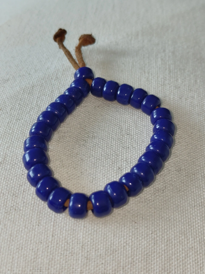 336Unique handmade bracelet. Features dark blue beads and brown leather cord. Adjustable closure. Mix and match! $5 for this item, or $10 for any 3 priced the same (check user posts).