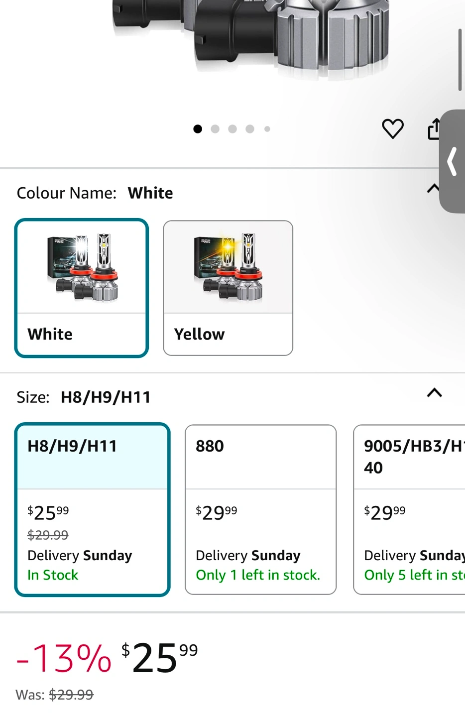 6500K Bright White: RCP H8/H9/H11 LED fog light bulbs, 6500K super bright white light, 4000LM per bulb, 300% brighter than the halogen bulbs, the lastest technology guarantees stronger light penetration power in extreme weathers.