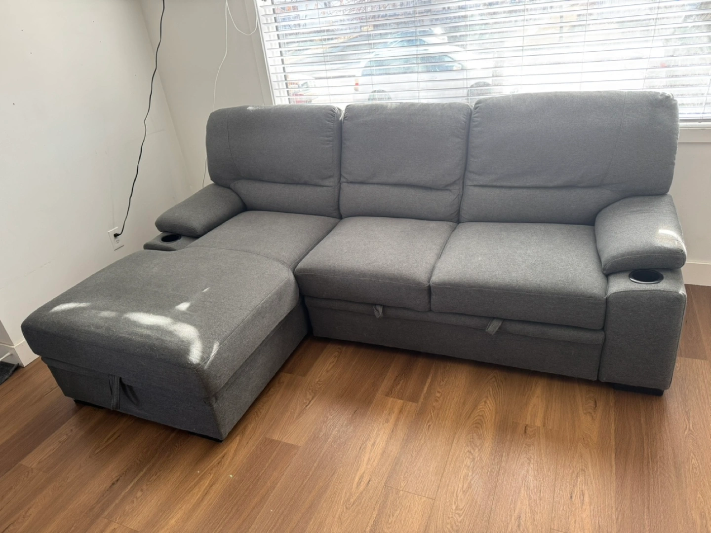 Grey Sectional Sofa/bed with Storage Ottoman