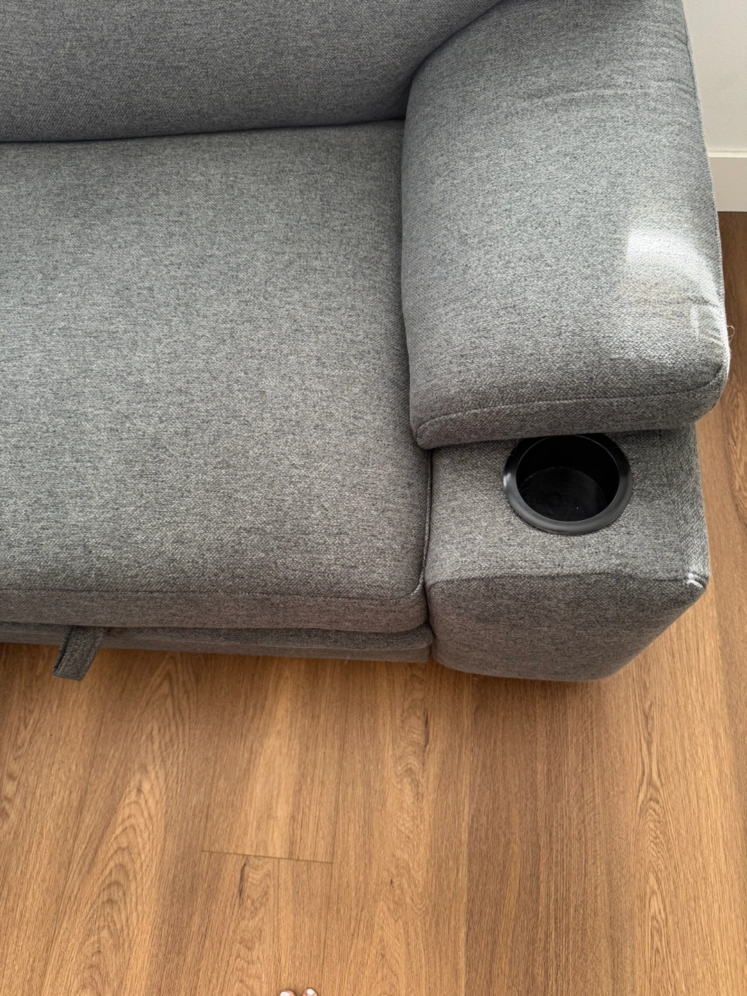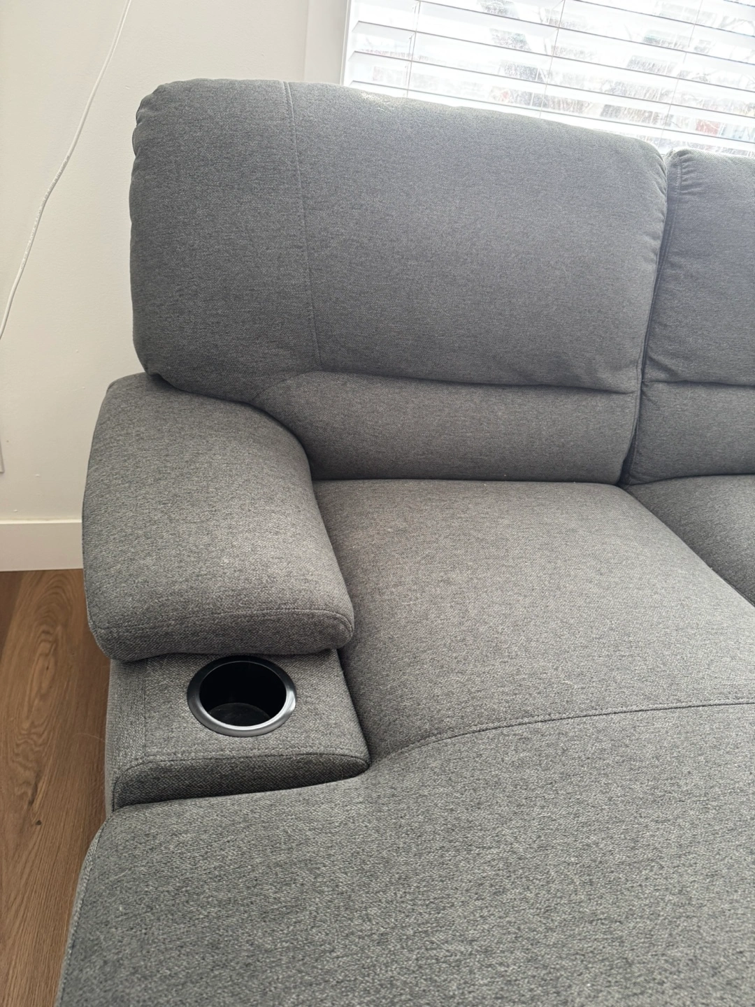Comfortable grey fabric sectional sofa.