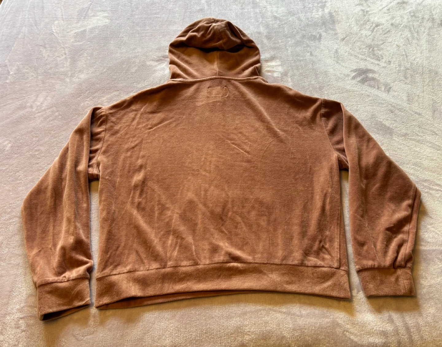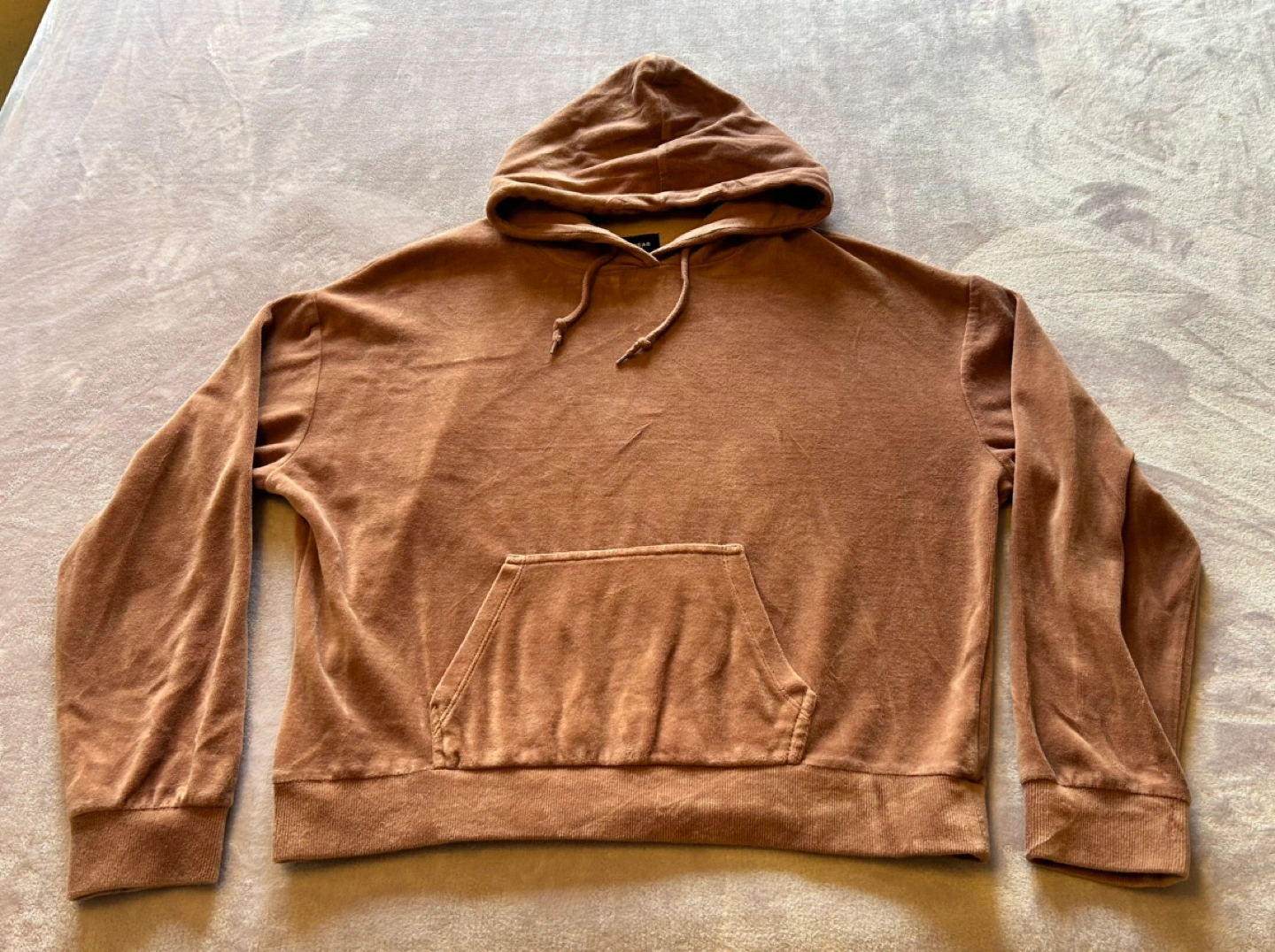 Brown velour pullover hoodie. Small size. Long sleeves. Kangaroo pocket. Drawstring hood. Lightweight and comfortable 😊