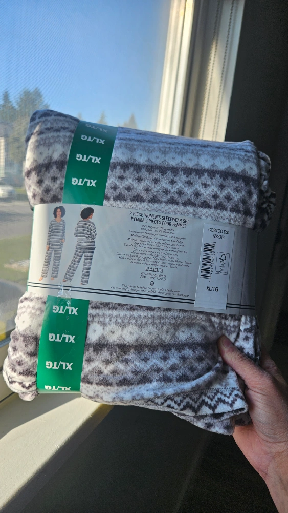 New with tags. Grey and white patterned fleece pyjamas. Size XL/TG. Soft and comfortable. Perfect for cozy nights.