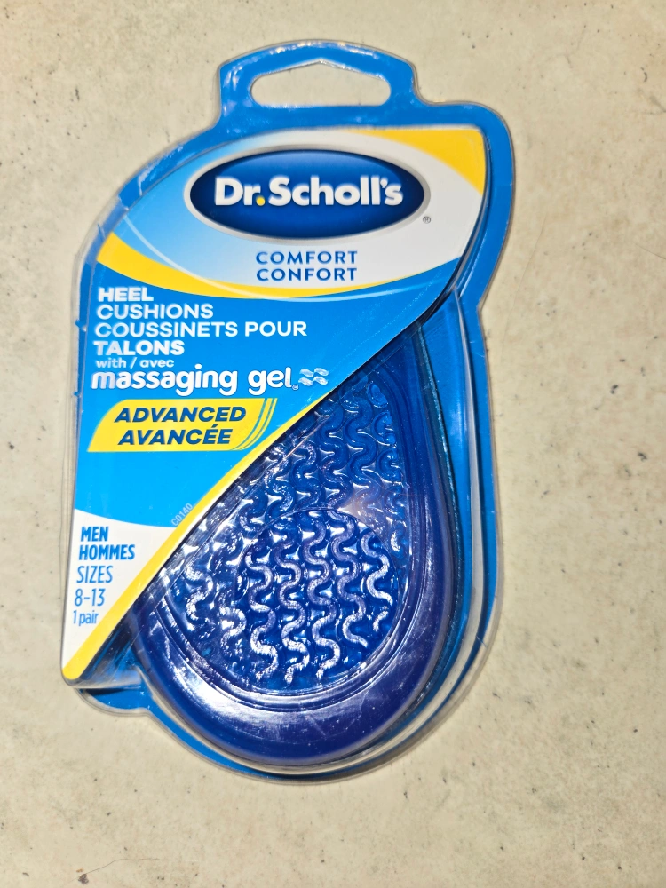 New Dr. Scholl's heel cushions. Advanced comfort. Massaging gel. Men's sizes 8-13. One pair. BNIB $15 obo Product Details: https://www.amazon.ca/Dr-Scholls-Comfort-Heel-Cushions/dp/B01M330NB5