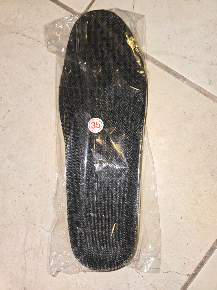 BNIP pair of memory foam shoe insoles. One side black, one side yellow. Size 35. Never used, sealed in original packaging. Great for comfort and support. Happy to trade for size 36 or something else I need?