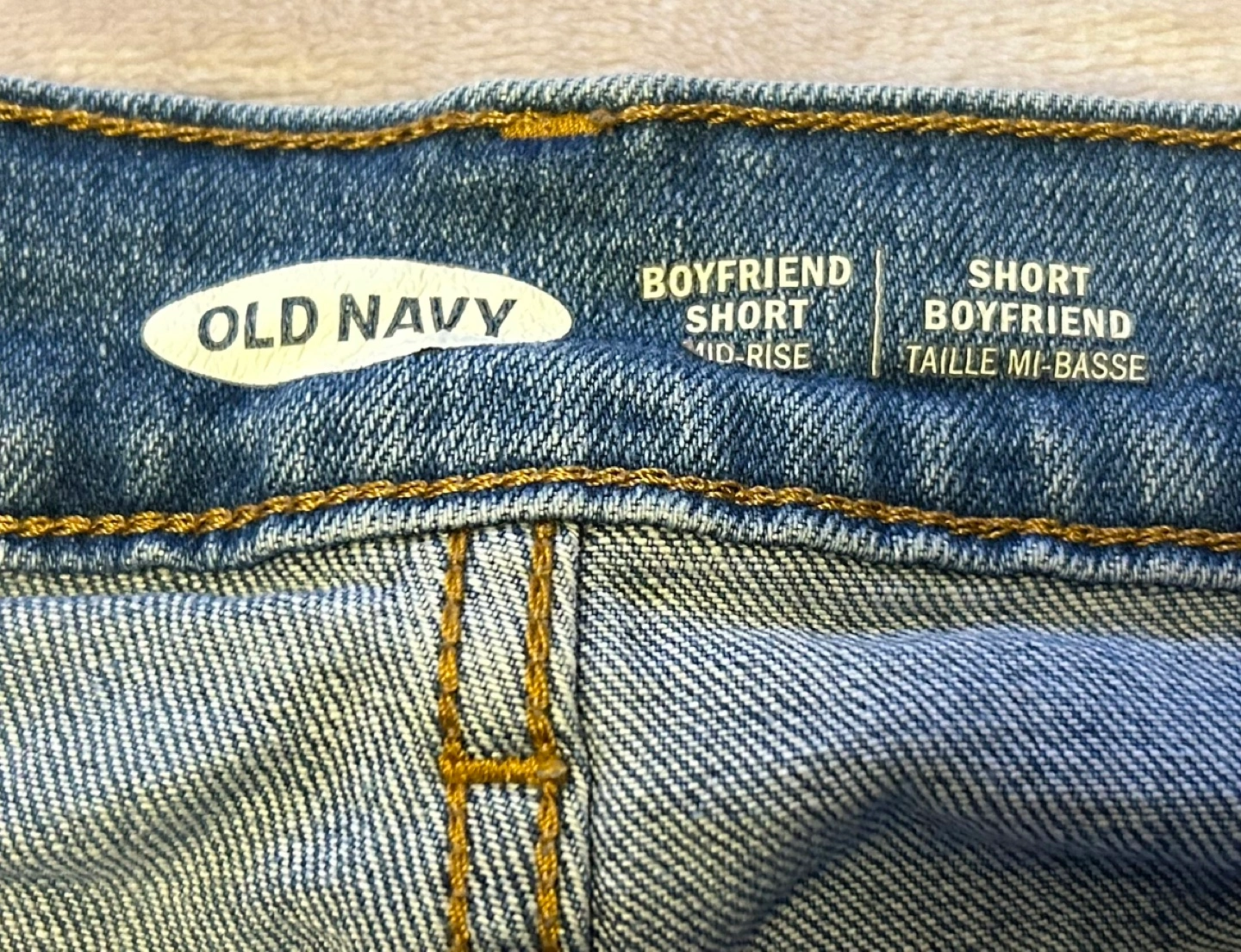 Old Navy distressed denim boyfriend shorts. Mid-rise. Size 4.