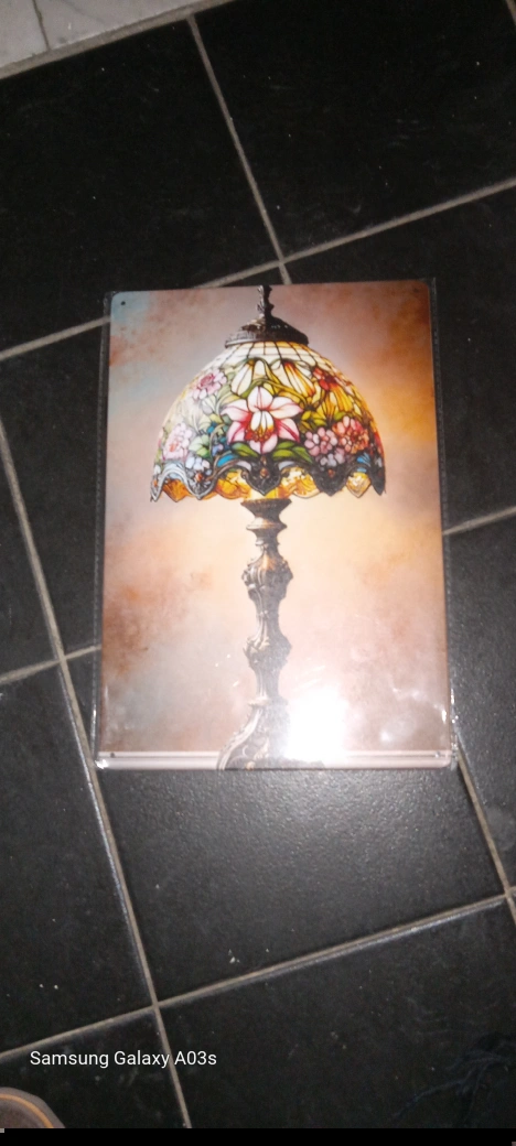 Beautiful metal wall art. Features a colourful Tiffany-style lamp design. New in plastic packaging. two of them for $10