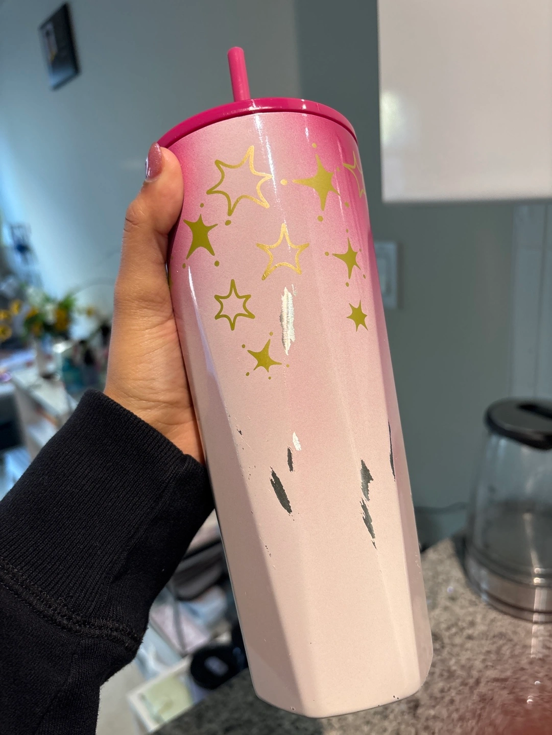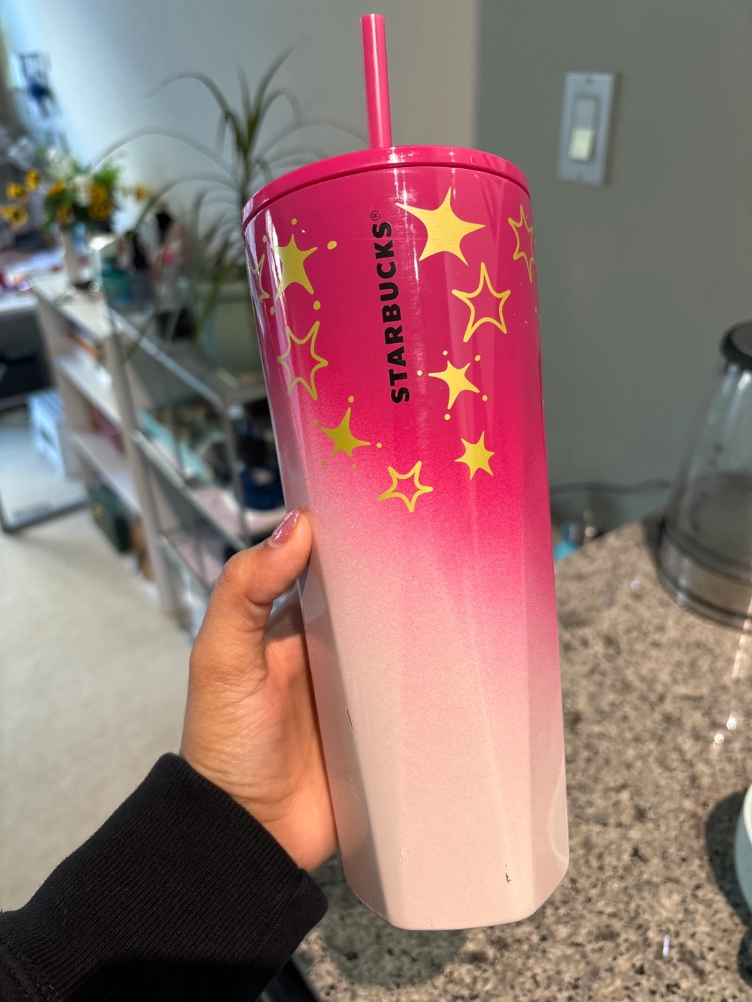 Reusable Starbucks stainless steel cup. Pink ombre design with gold stars. 24oz/710ml. Minor wear and tear as shown in the pic. Original price : 42$ + tax