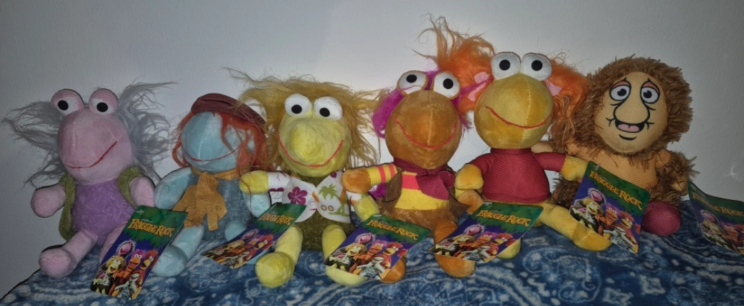Six adorable Fraggle Rock plush toys. Collectible characters. New with tags. Perfect for fans or collectors.