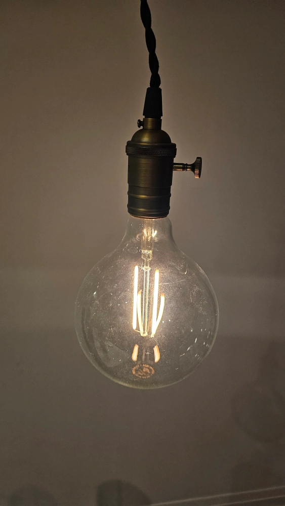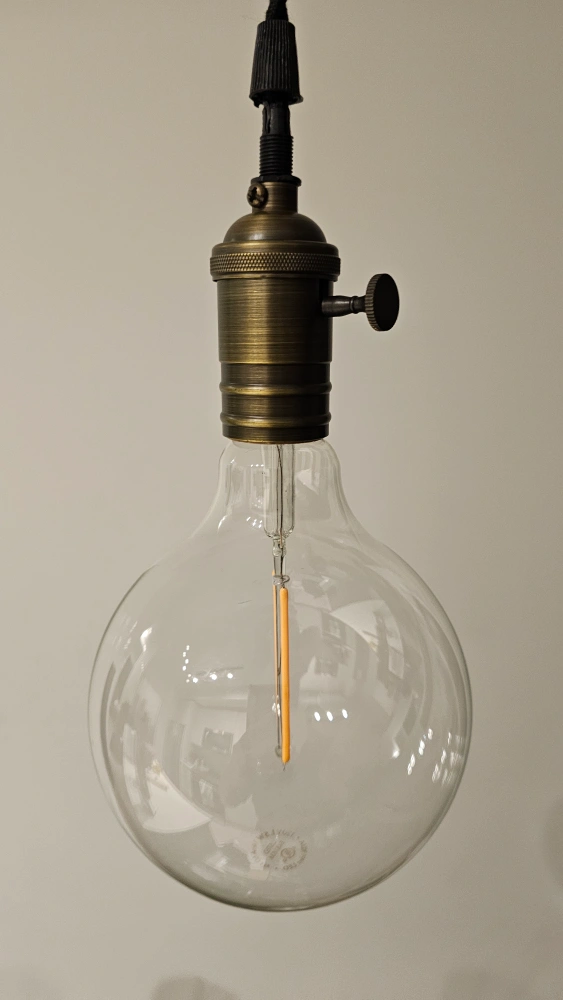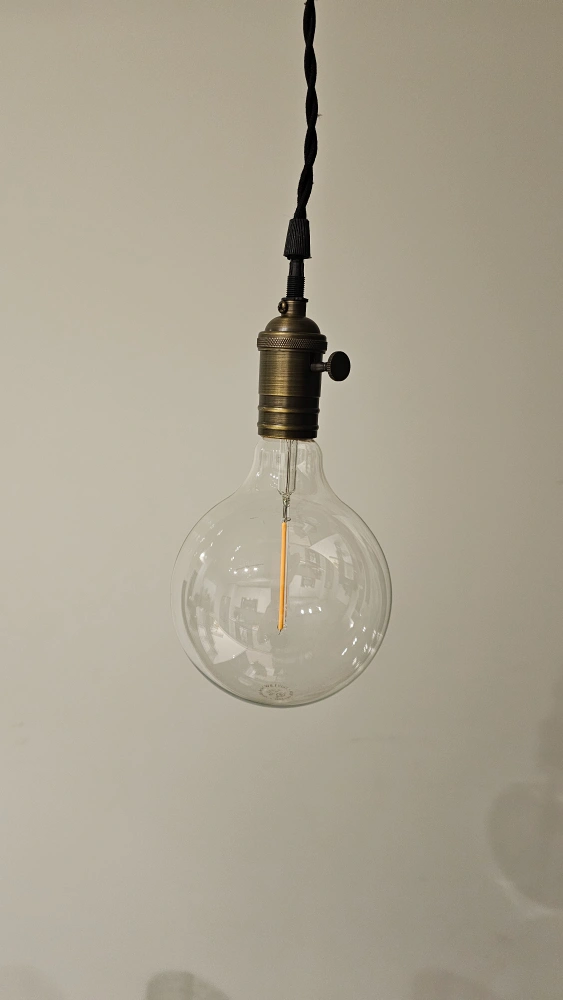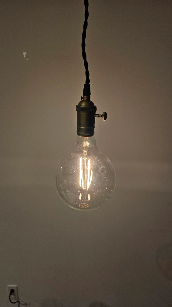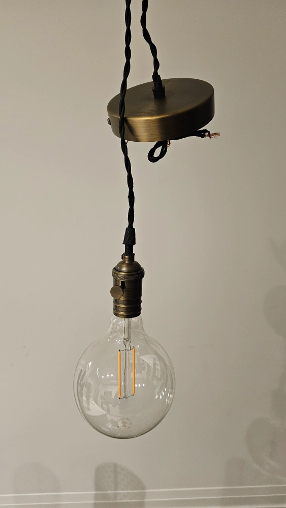 Beautiful pendant light features an antique brass finish. Includes bulb and cord. Perfect for adding a touch of vintage charm to any space. Easy to install.