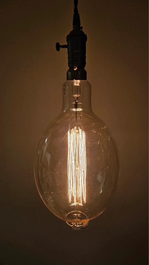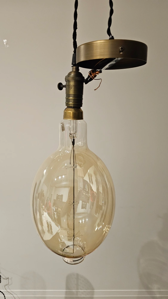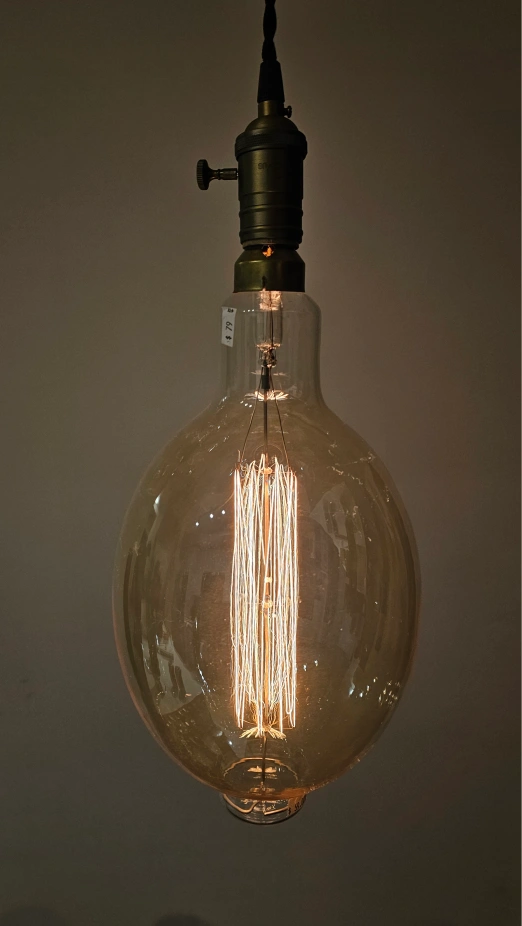 Unique pendant light fixture. Features an antique-style Edison bulb and a brass socket. Perfect for adding a touch of vintage charm to any space. Includes hanging cord. Bulb dimensions: H - 13.79" Diameter 7.09"