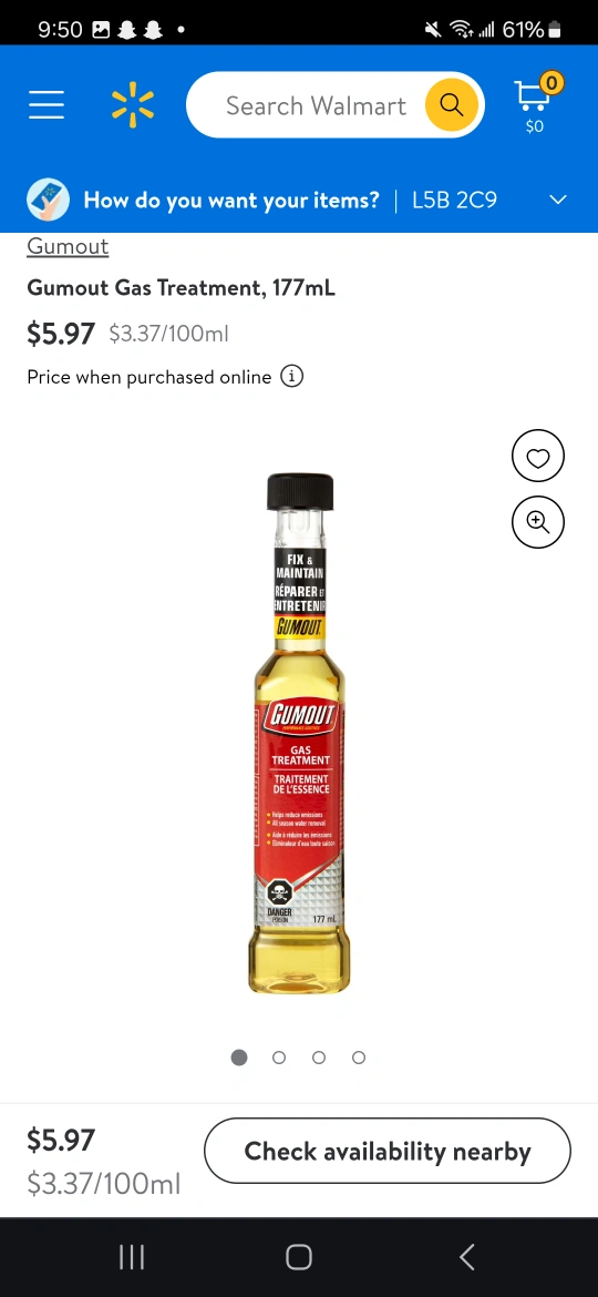 102Gumout Gas treatment - Helps protect Your fuel system - Prevents future deposit build up - Helped reduce emissions - Safe for use in turho and supercharged vehicles I'm selling for $ 5 firm Walmart is selling for $ almost 7 with taxes