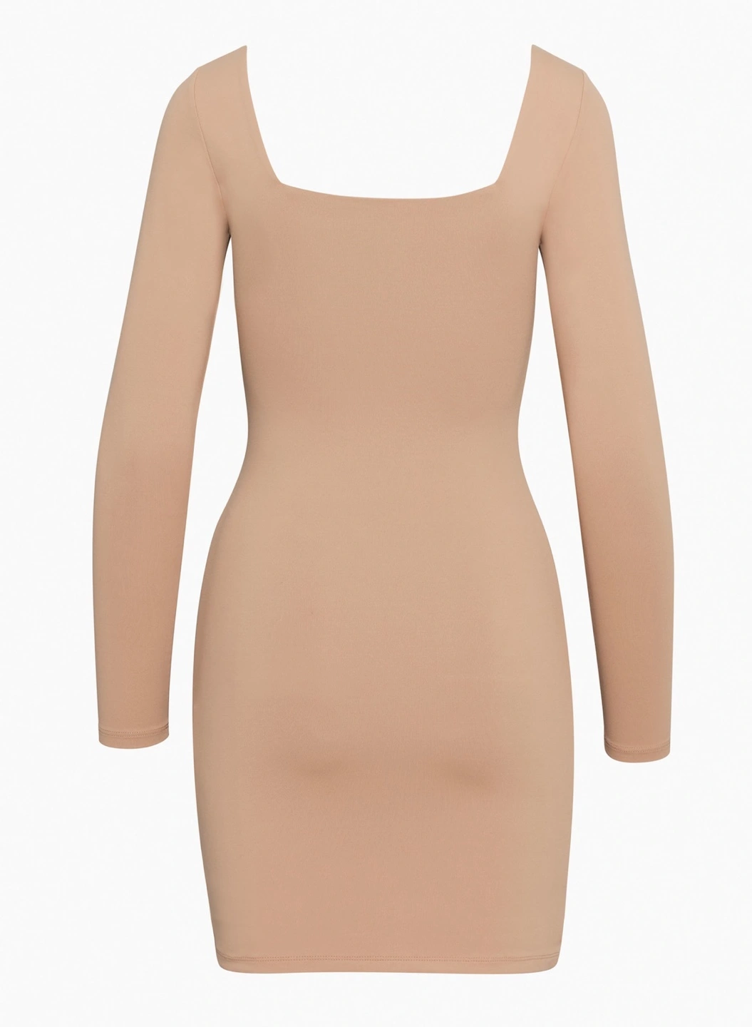 Neutral mini dress. Square neckline. Long sleeves. Bodycon fit. Excellent for casual or going out.