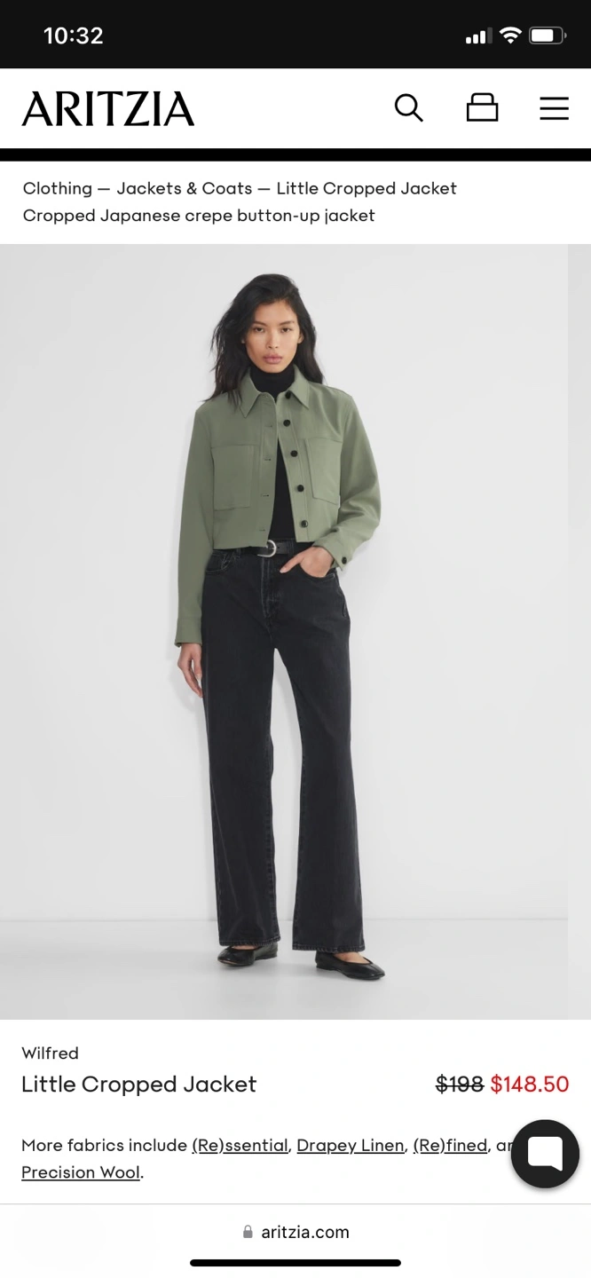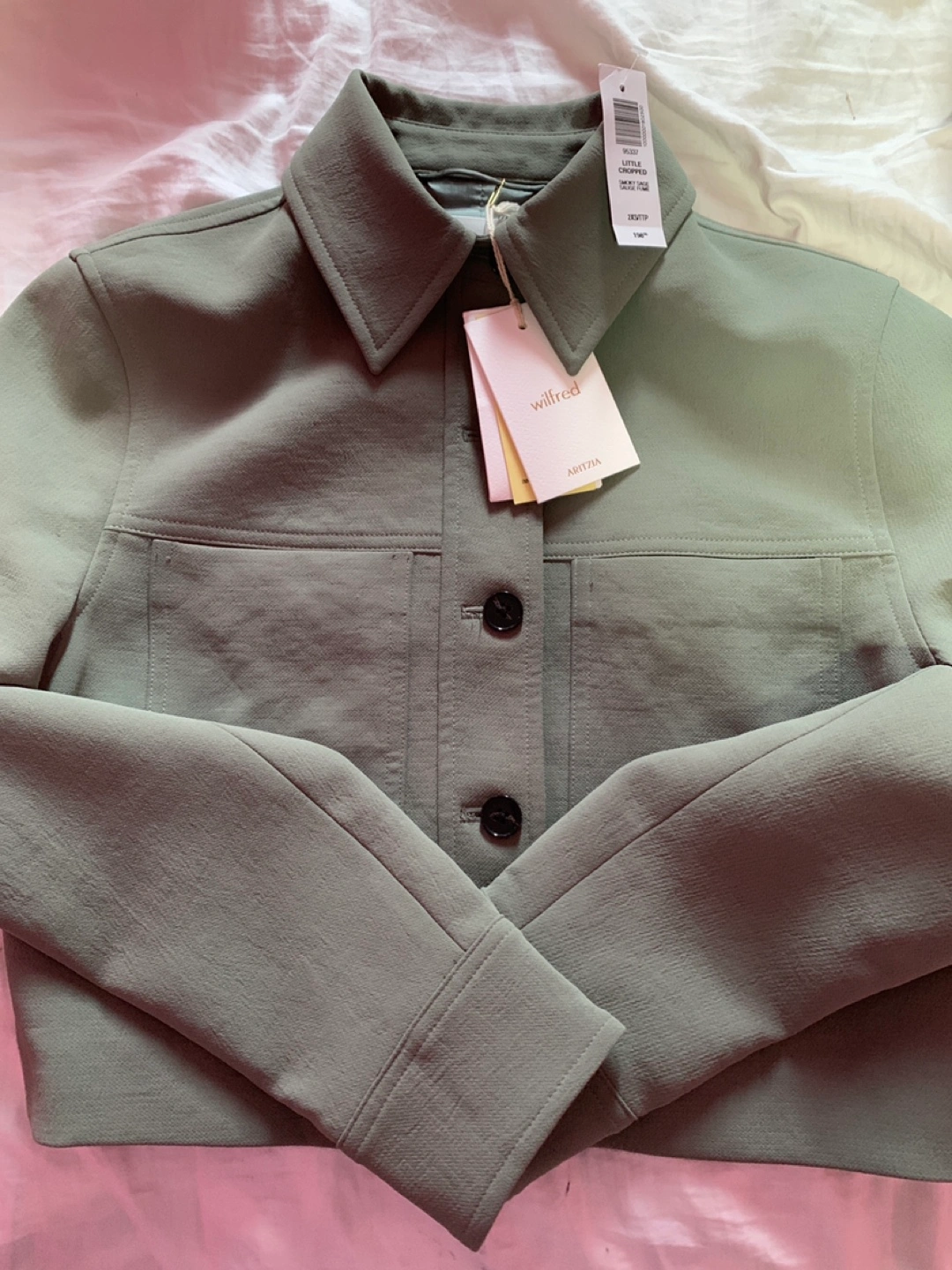 Smoky sage cropped button-up jacket. Japanese crepe material. Excellent condition.