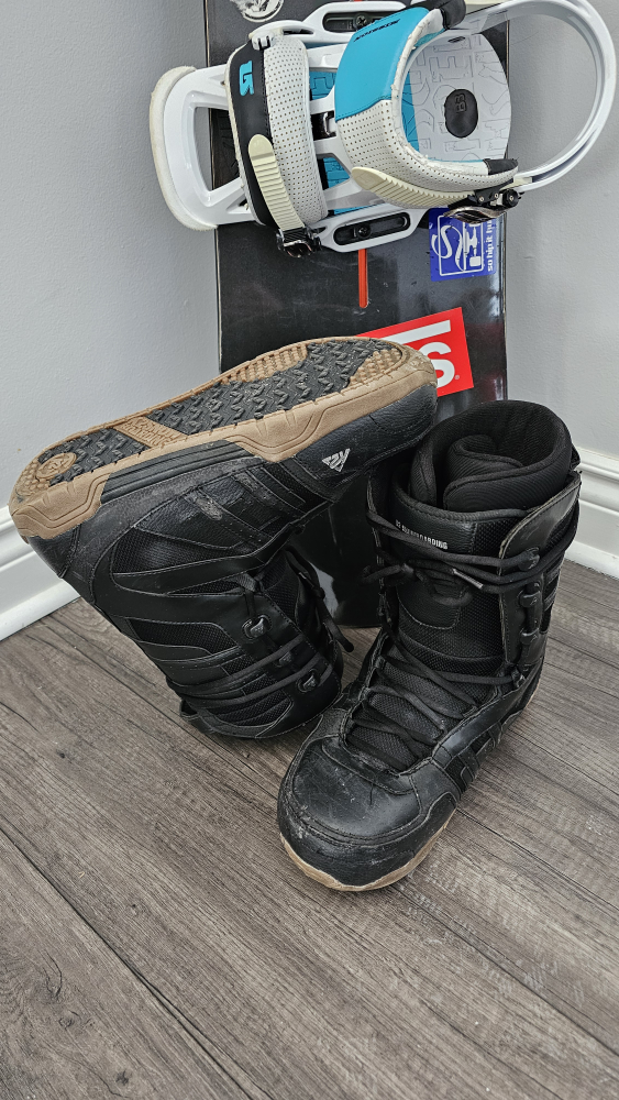 Burton Superhero 154 (2013) Snowboard + Burton X EST bindings (L/XL) + K2 Men's Boots (Size 10; should fit 9.5~11) + Dakine carry bag, all inclusive. Normal wear and tear, but well maintained over the seasons. Stored indoor.
