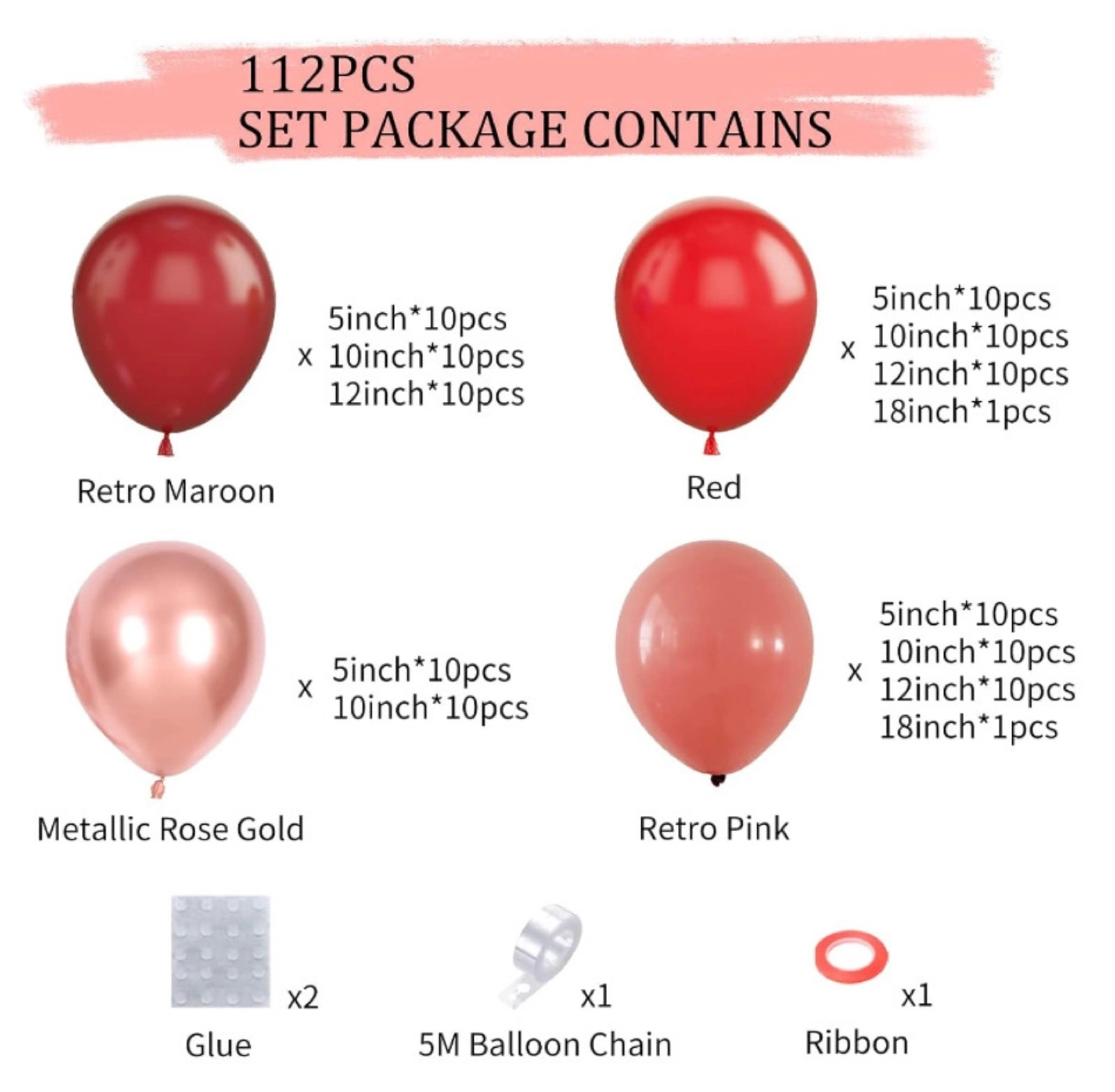 GREMAG Red Balloon Garland Kit, Balloon Arch Kit 112 Pcs, Red Retro Maroon and Pink Metallic Rose Gold Latex Balloons, 5 10 12 18 Inch for Wedding Birthday Carnival Theme Graduation Party Decorations