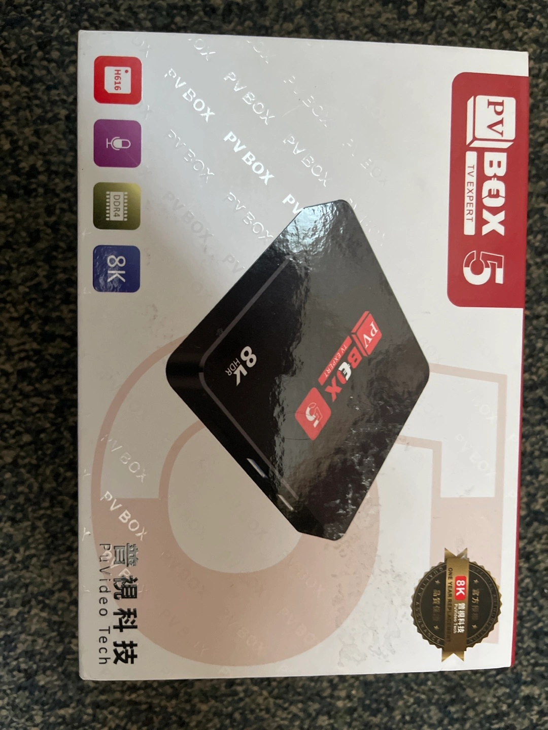 New in box. 8K resolution. Includes HDR and H616. Features DDR4 memory. Instructions in Chinese.