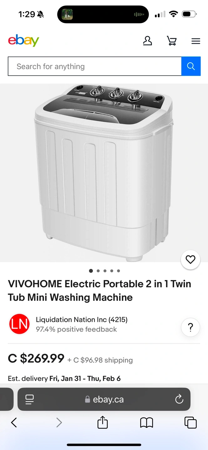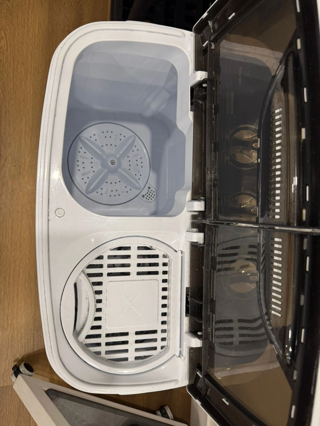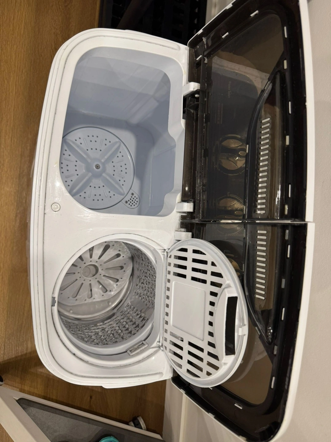Compact and convenient washing machine. Two tubs, one for washing and one for spinning. Easy to use controls. Great for small spaces or apartments; perfect for RVs.