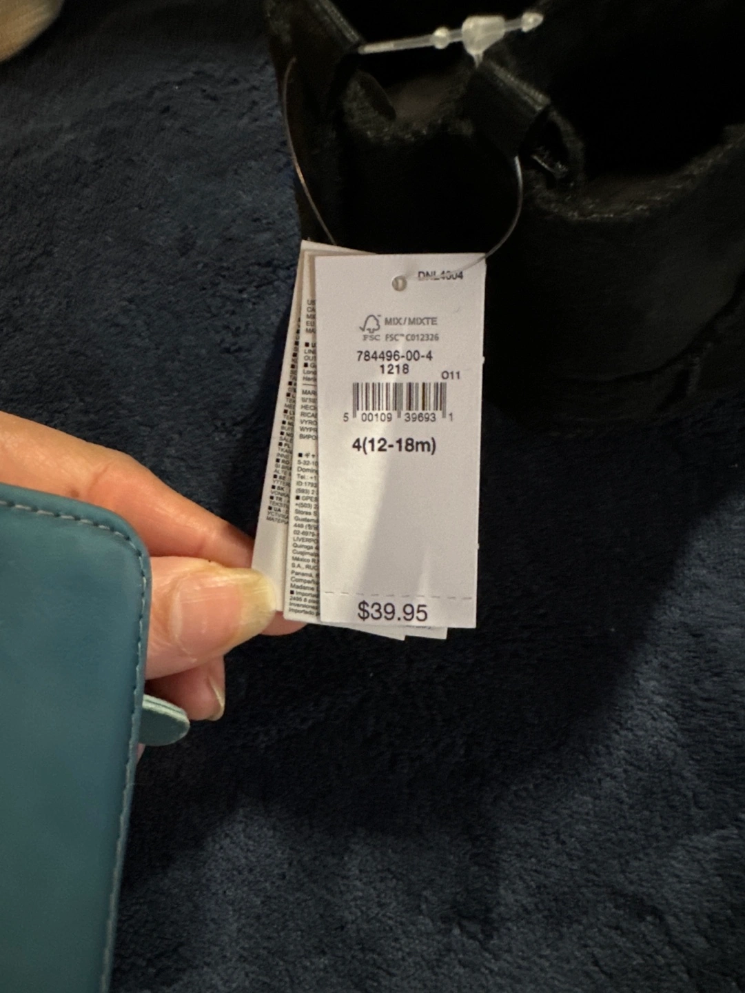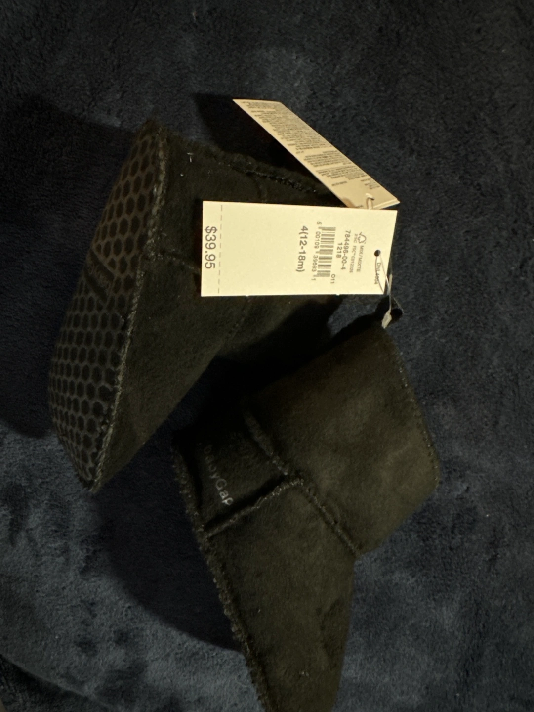 Black baby booties from The Gap. Size 12-18 months. Soft material. Grippy bottoms. New with tags.