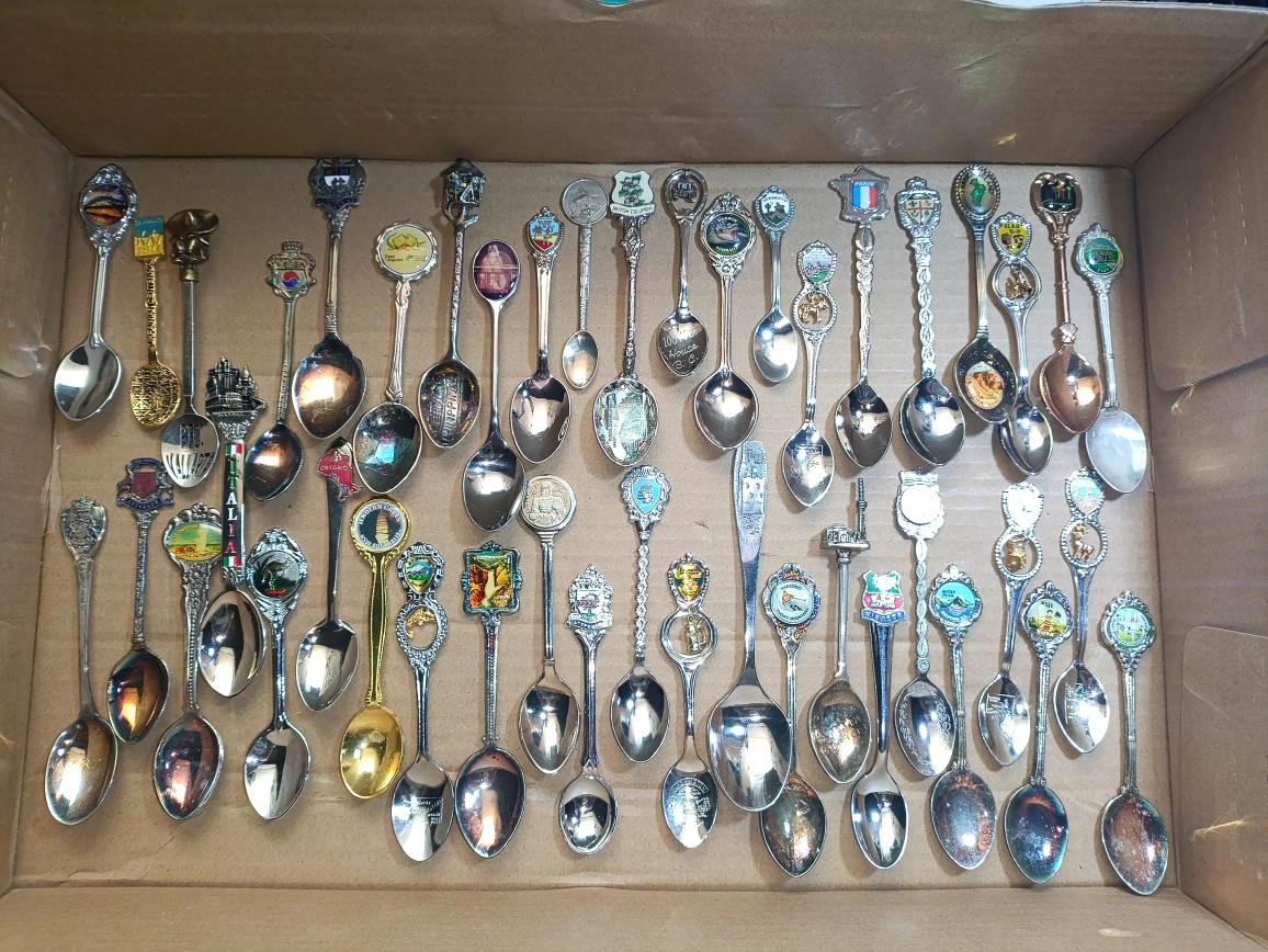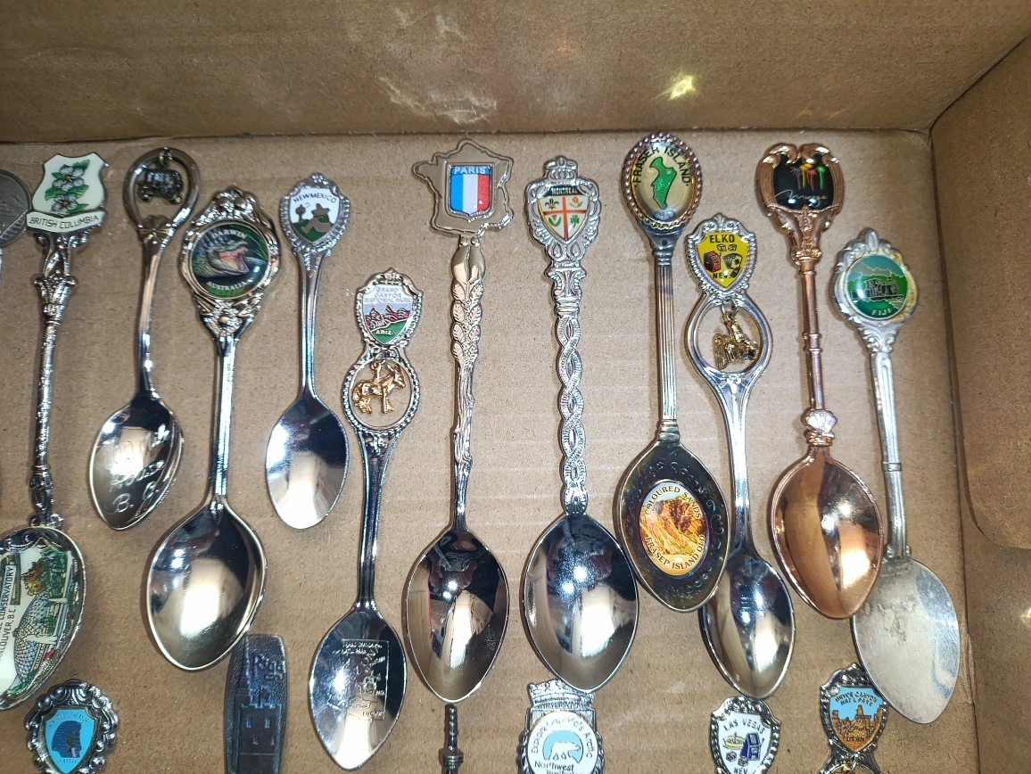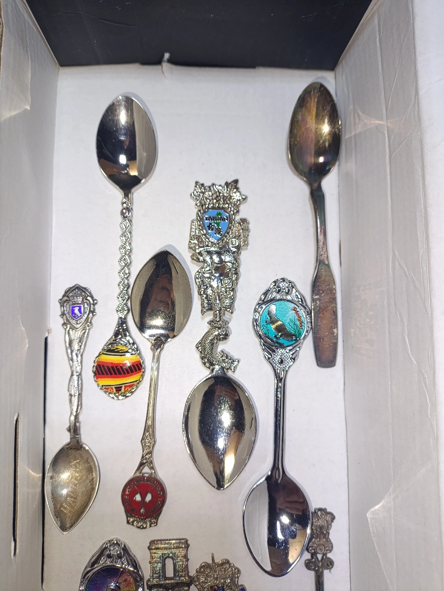 Large collection of souvenir spoons. Many different designs and locations featured. Great for collectors or anyone who enjoys unique items. $3/ea