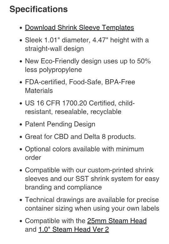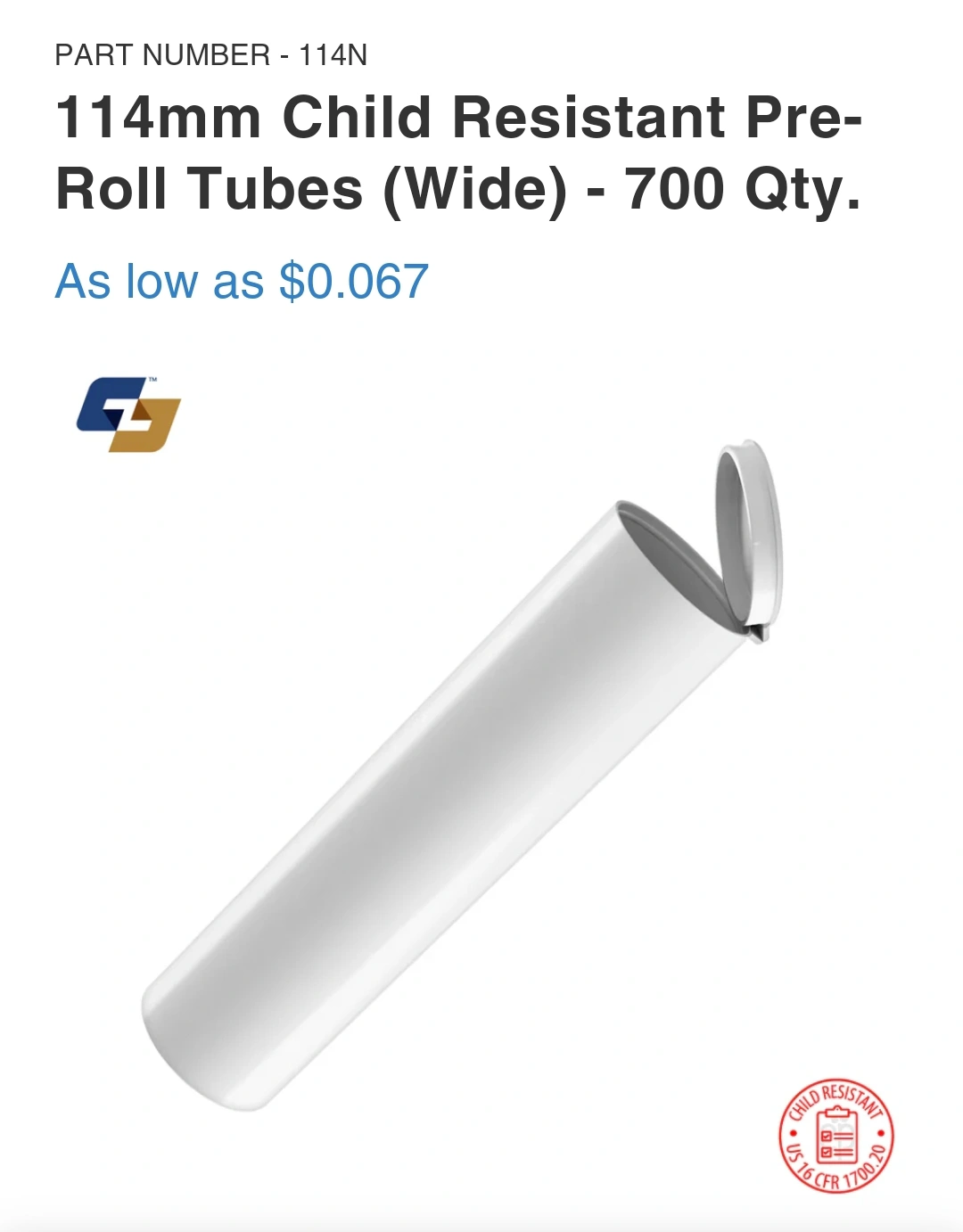 Bulk package of 700 plastic containers. White tubes available. 114mm wide. Ideal for storing and packaging small items. Made in the USA.