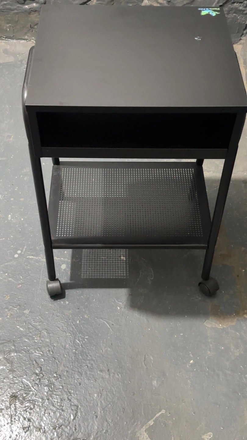 Upgrade your space with this sleek black rolling utility cart, perfect for home, office, or workshop use.