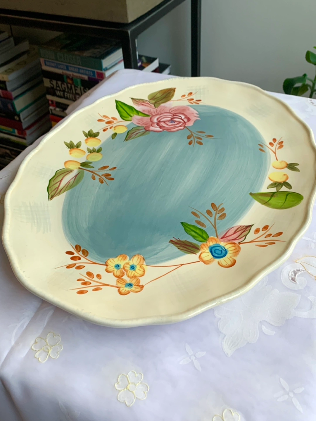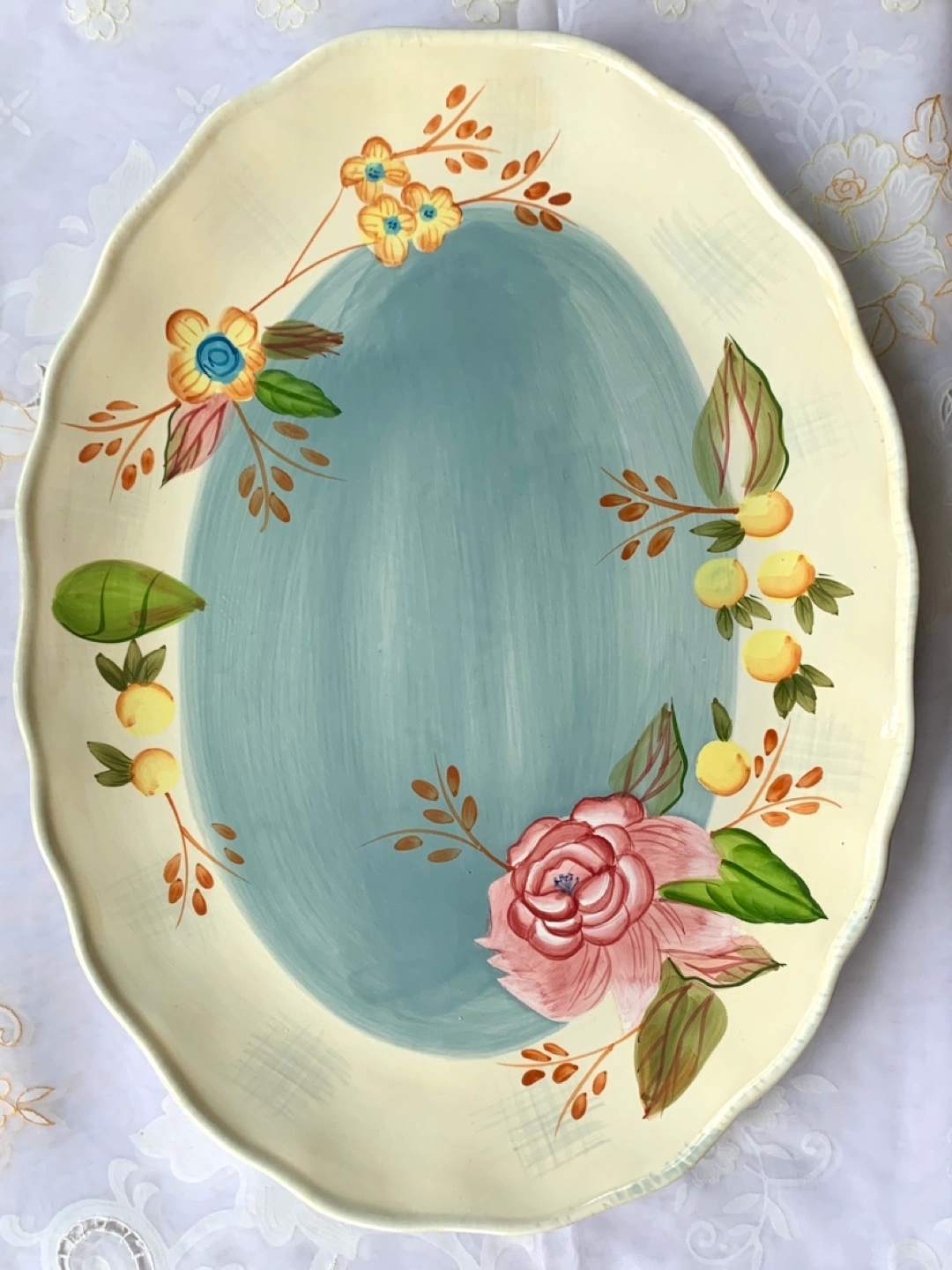 Large Oval Plate with Hand-Painted Floral Design