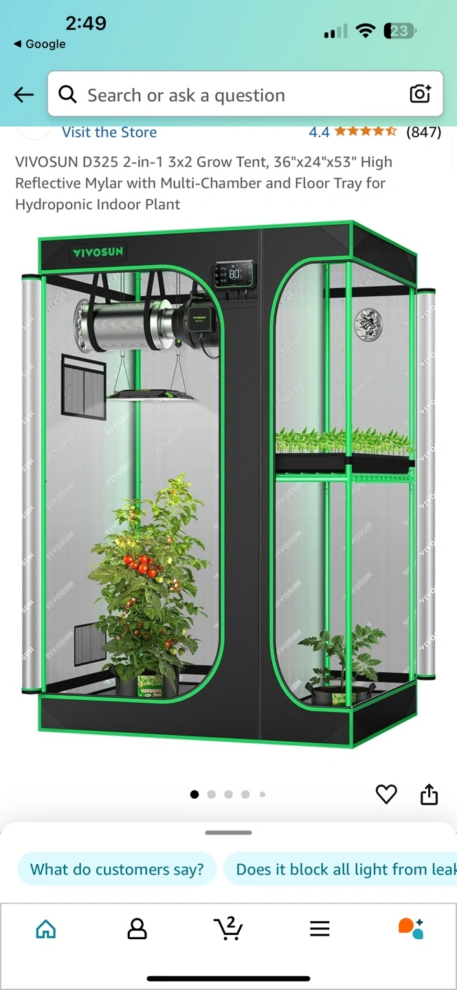 VIVOSUN D325 2-in-1 3x2 Grow Tent, 36"x24"x53" High Reflective Mylar with Multi-Chamber and Floor Tray for Hydroponic Indoor Plant