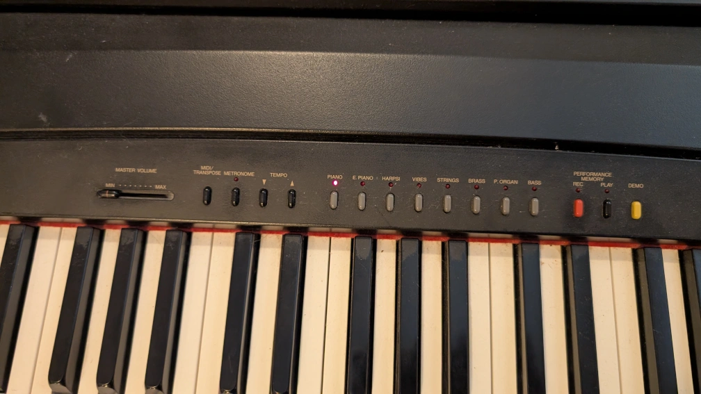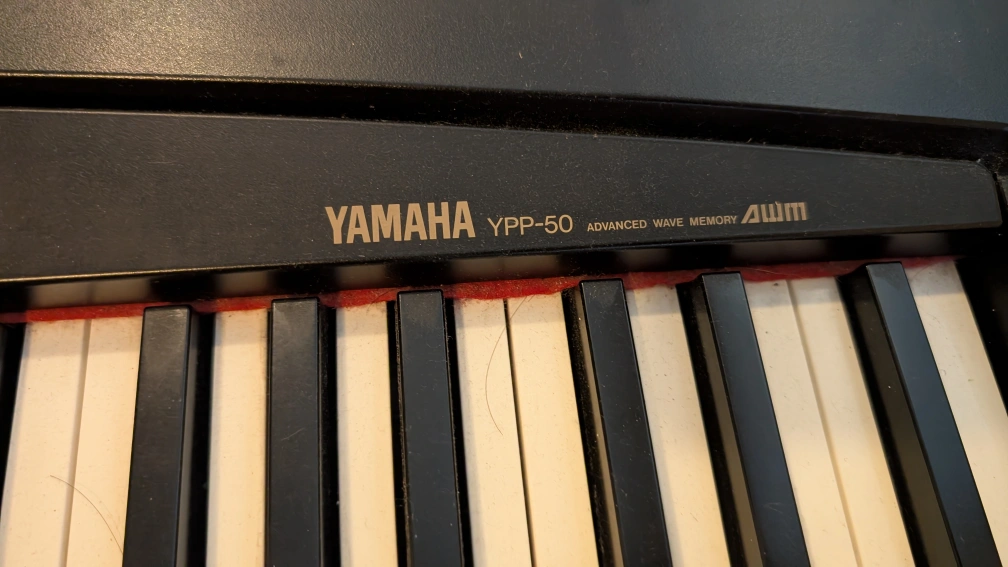 Yamaha YPP-50 digital piano. Features multiple instrument voices. Includes MIDI and damper connections. Good condition, some minor cosmetic wear. some keys doesn't appear to be working 100%