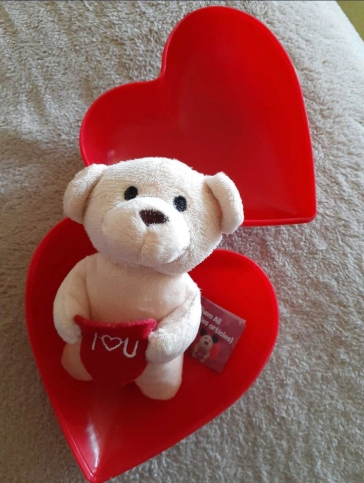 Available! Cute beige teddy bear holding a red "I ❤you" heart. Comes in a red heart-shaped plastic container. Free Chocolates with purchase while supplies last. Cash and Pickup close to Willowdale middle school OR NorthYork Centre Station/ Empress Walk.